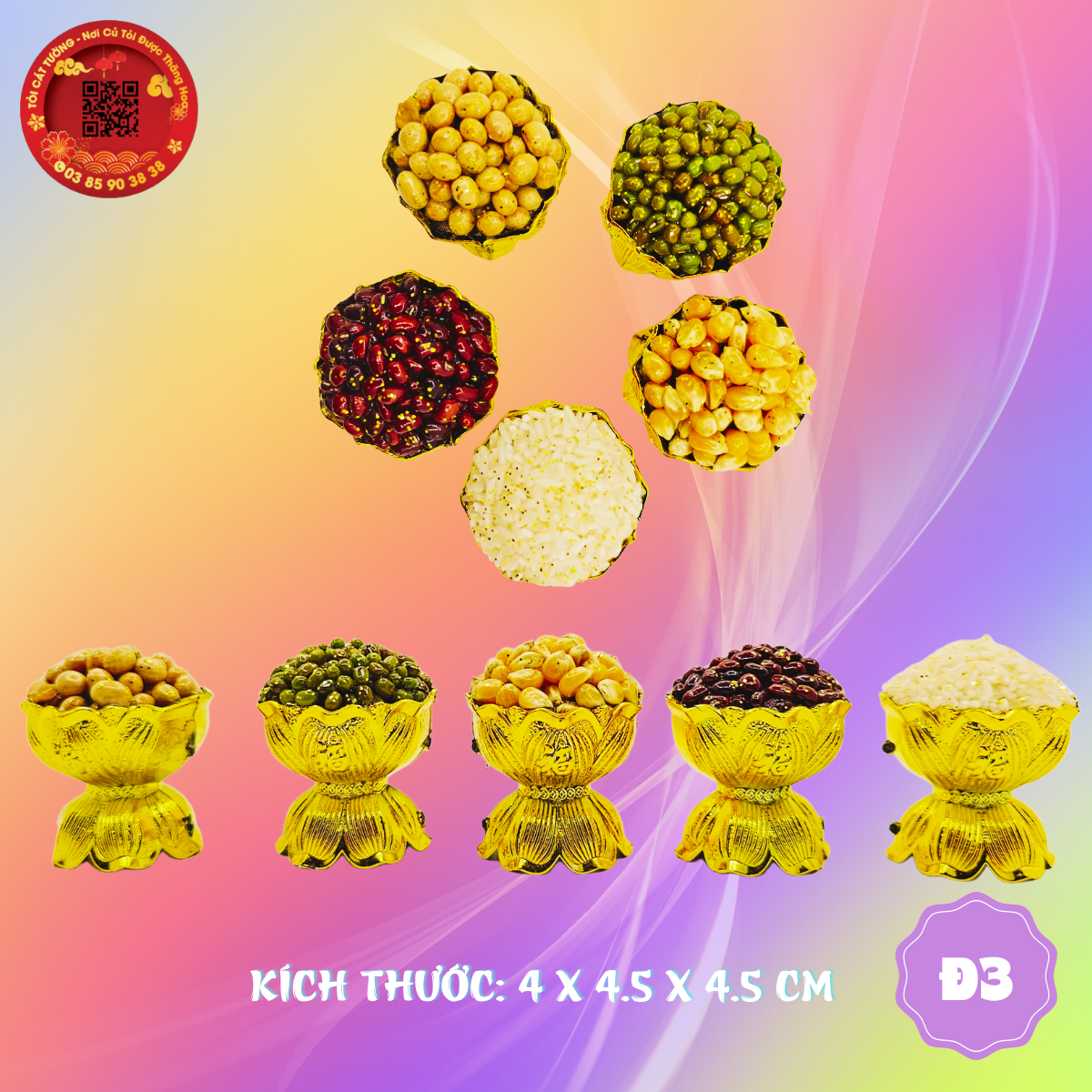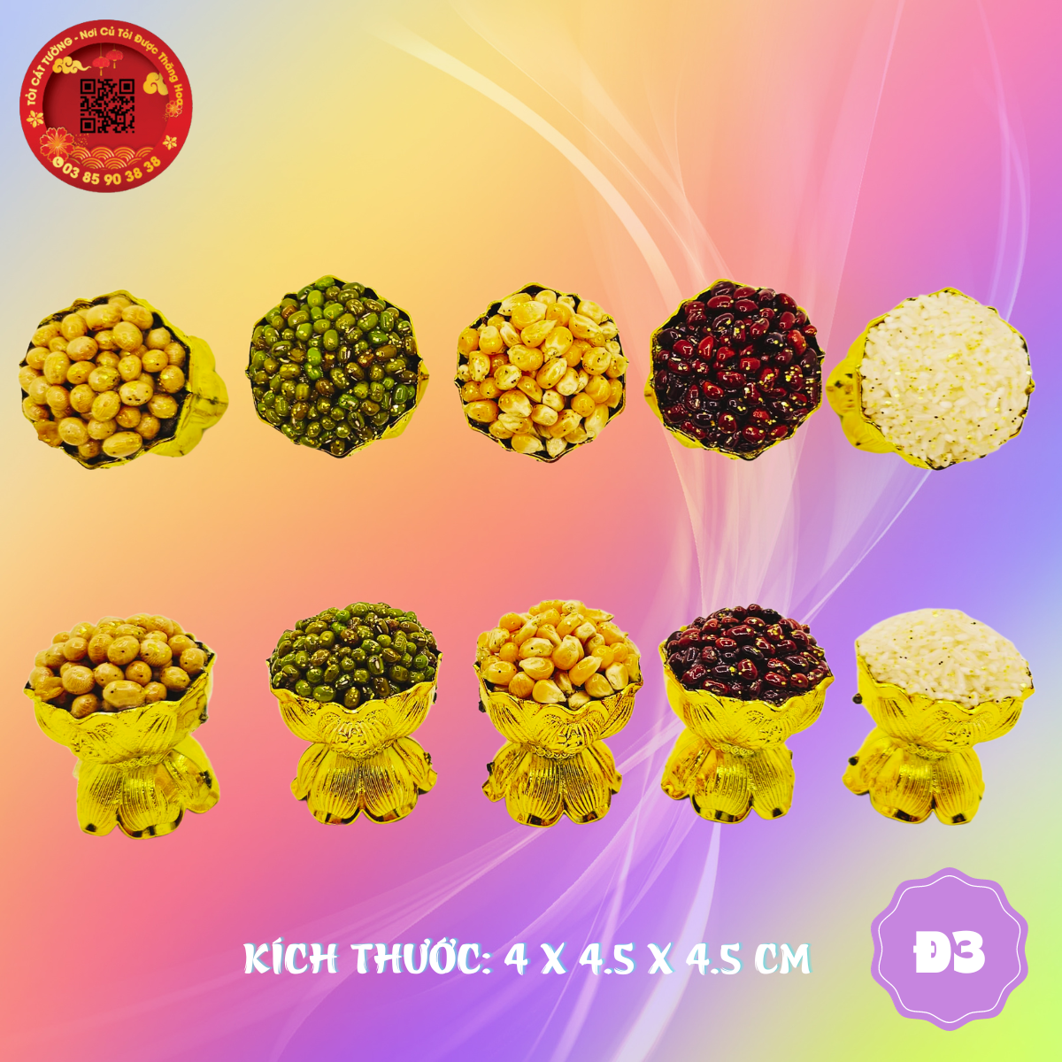 TỎI CÁT TƯỜNG hân hạnh mang đến Bộ ngũ cốc chân ly sen thiết kế sắc sảo bắt mắt đại diện cho kim mộc thùy hỏa thổ tương sinh tương khắc trong phong thủy!