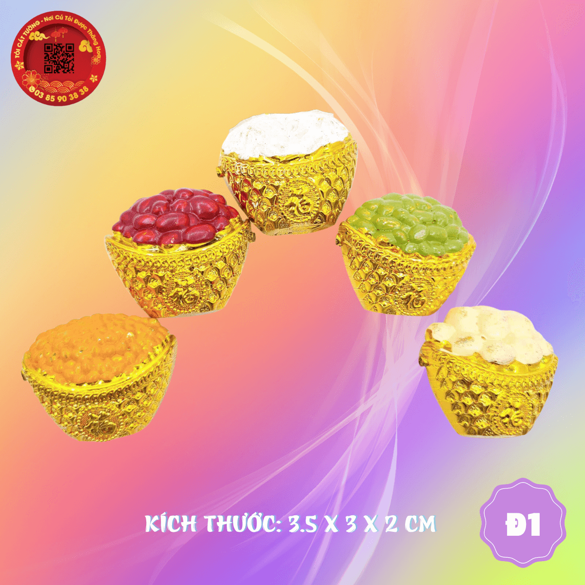 - 1 bộ gồm 5 thỏi vàng đã có gạo, đậu xanh, đậu trắng, đậu đỏ, bắp