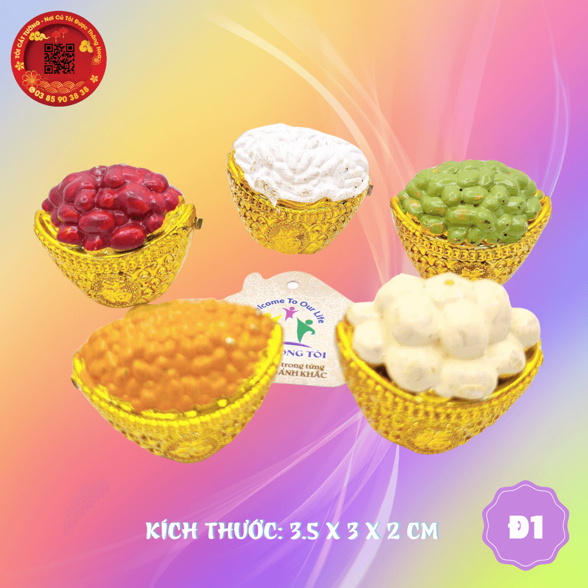 - Bộ thỏi vàng đậu gạo ngũ cốc độc lạ được đúc giả nguyên khối, màu sắc tươi sáng cực xịn, hạt gạo đậu sắc sảo bắt mắt, thỏi vàng có khắc chữ phúc/phước rất đẹp