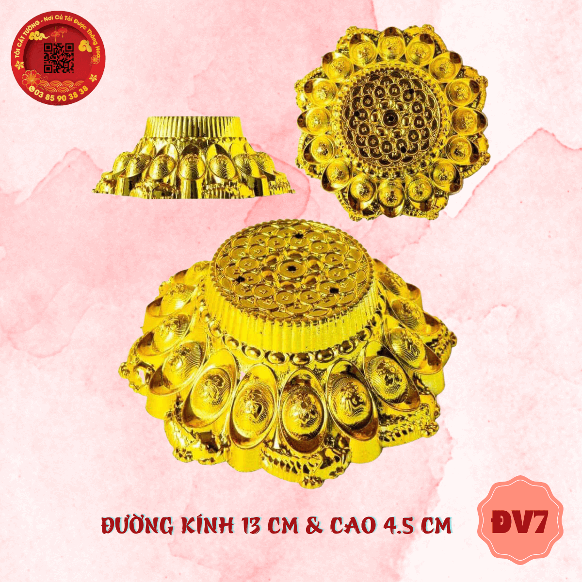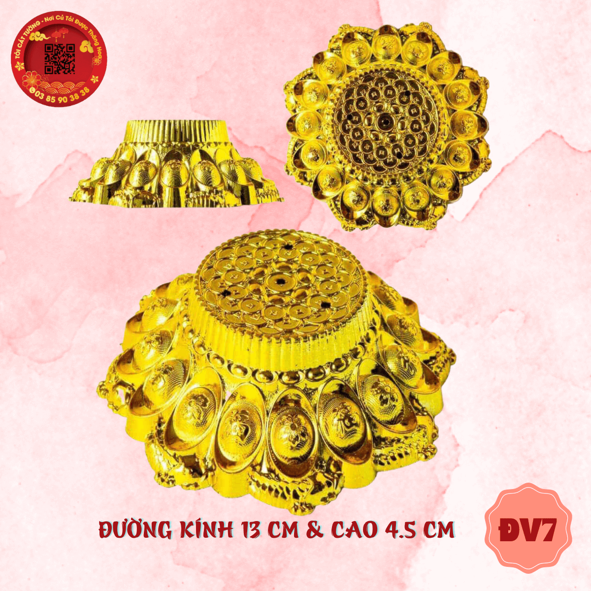 - Là mẫu chân đế vàng mới nhất trong bộ sưu tập nguyên liệu làm tháp tỏi thần tài, bông tỏi ông địa, oản,...