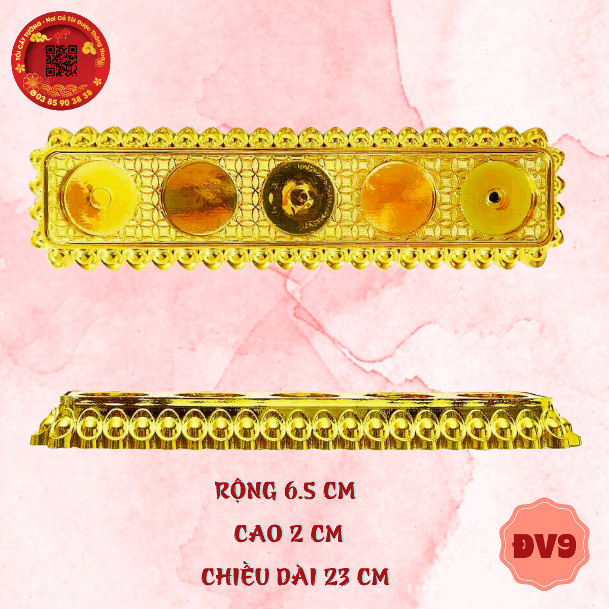Đế vỉ hình thỏi vàng có gam màu vàng tươi sáng cực yêu cực xịn sò giúp bàn thờ thêm phần lộng lẫy!
