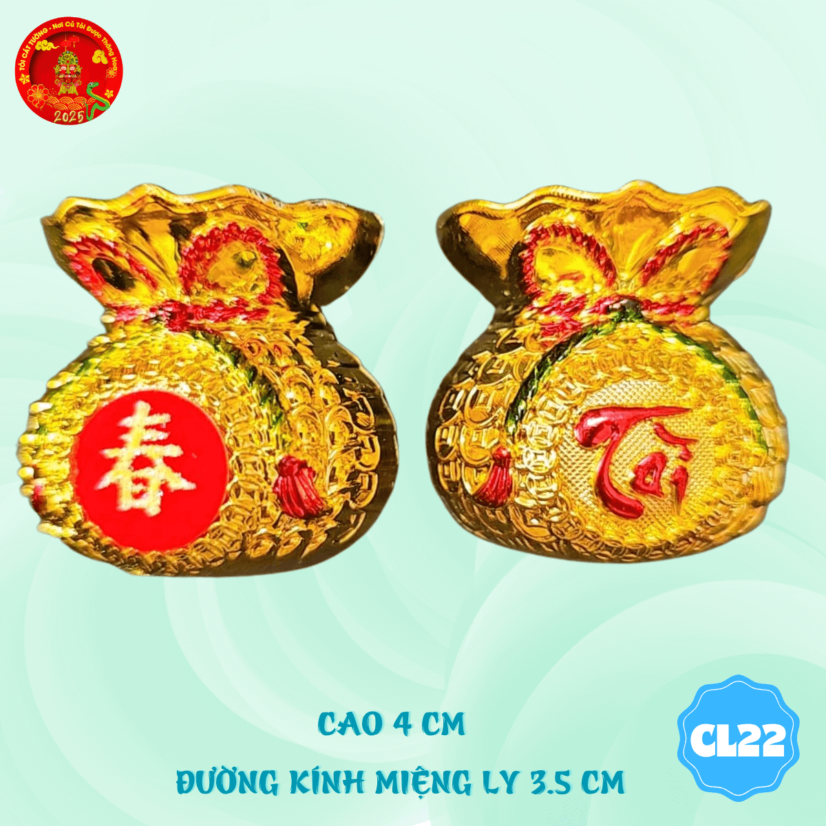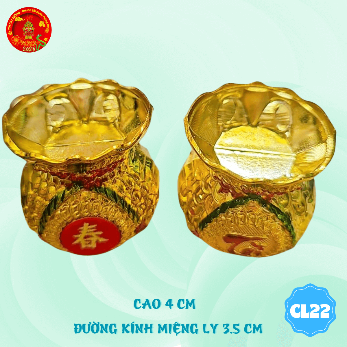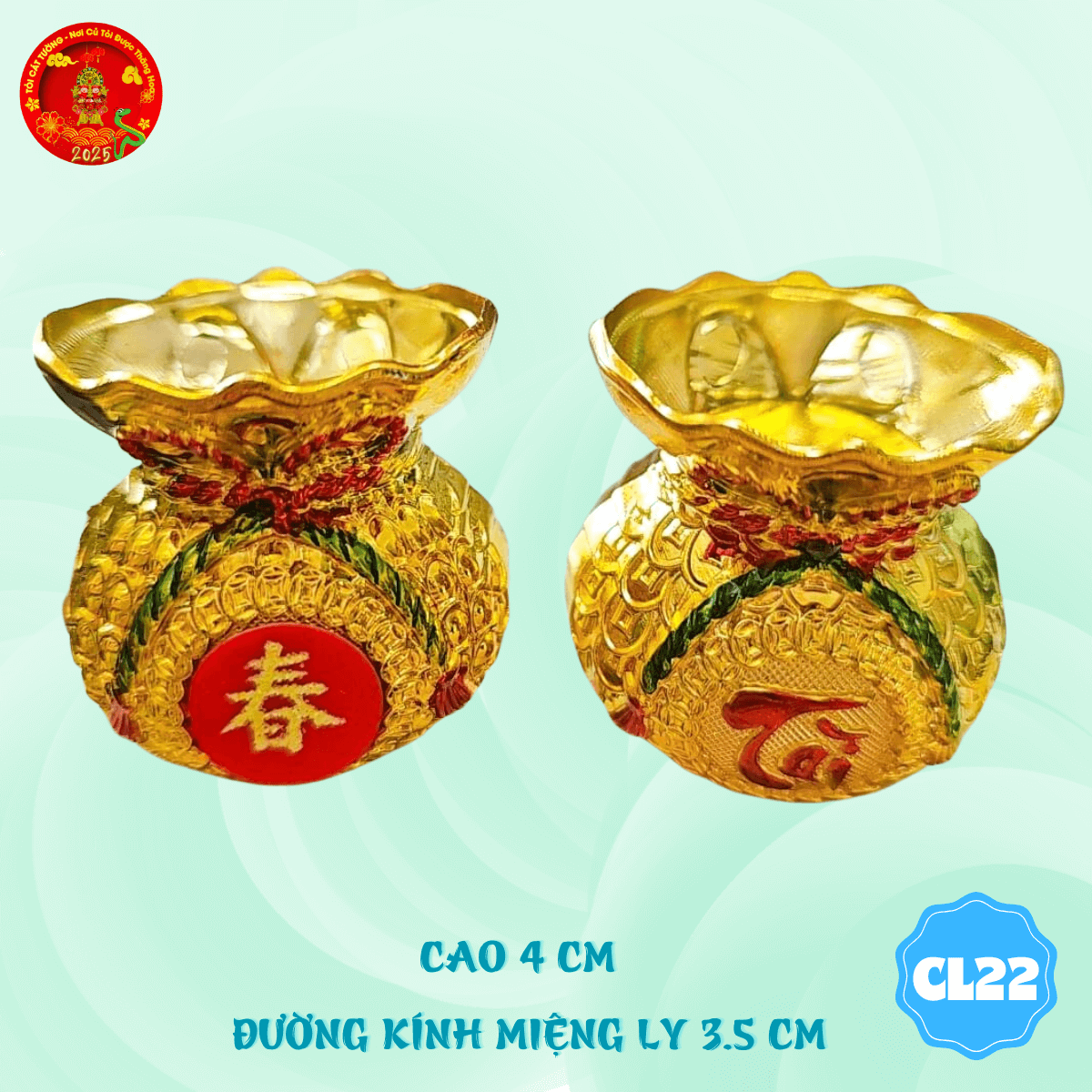- Chung ly thờ cúng túi vàng phúc lộc thiết kế hoàn hảo, tiết kiệm ngũ cốc giúp trang trí mọi nơi thêm lộng lẫy và độc đáo