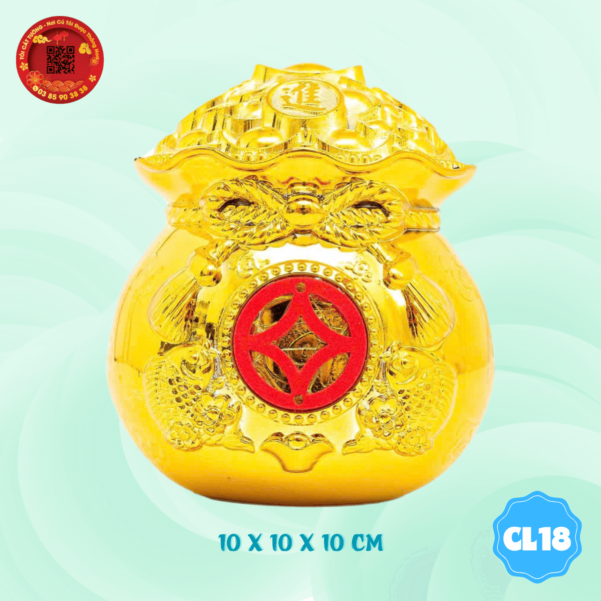 Hủ túi vàng lớn đựng nước muối gạo sang trọng mang ý nghĩa phong thủy tài lộc, may mắn cho gia chủ, rước của cải vào nhà, ngăn chặn tà khí!