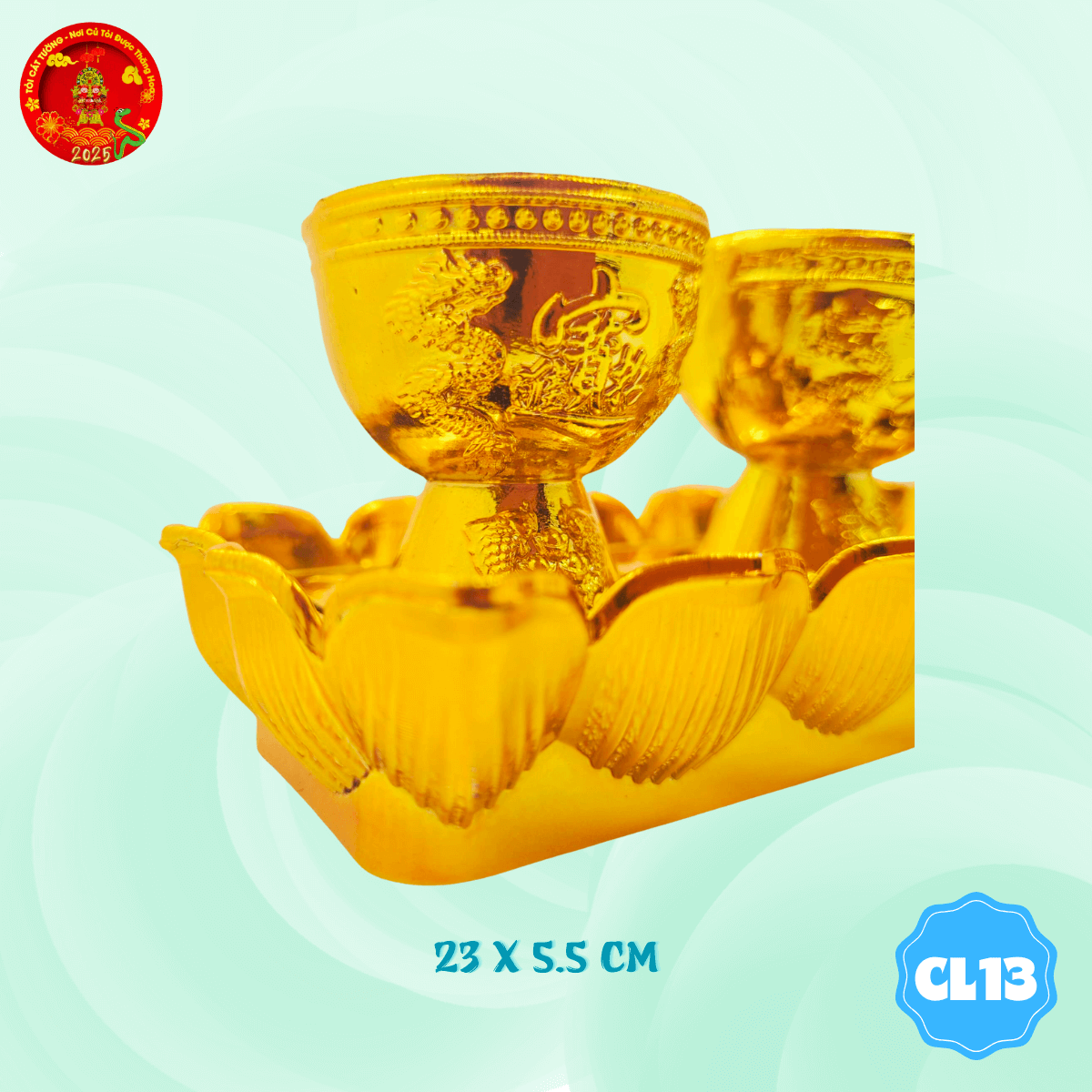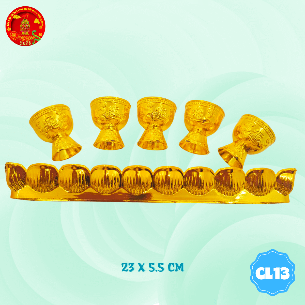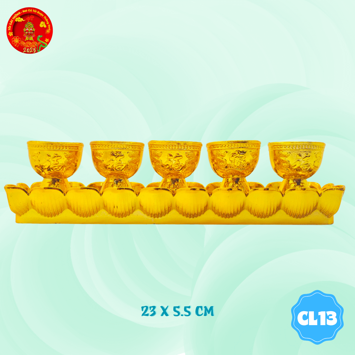 - Vỉ 5 chung ly chữ phúc có thiết kế từ những cánh hoa sen tinh tế kết thành hình đầy chỉnh chu và hoàn hảo