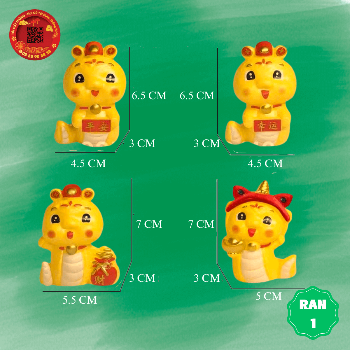 Con rắn chibi siêu xinh xắn có 4 mẫu hình rắn vận may, rắn bình an, rắn cầm túi tiền chữ tài, rắn đầu lân cầm vàng ngoài khả năng thu hút tài lộc, rắn còn có khả năng diệt trừ cái xấu, hóa giải tà khí cho cả nhà!
