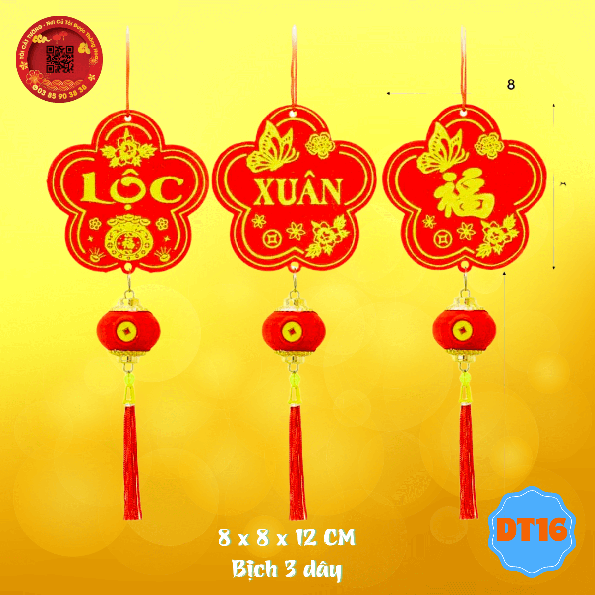 - Dây treo trang trí tết hoa mai xuân phúc lộc có thiết kế mới lạ và độc đáo giúp bạn tha hồ trang hoàng nhà cửa thêm sang trọng và thêm ấm áp khi mùa xuân về