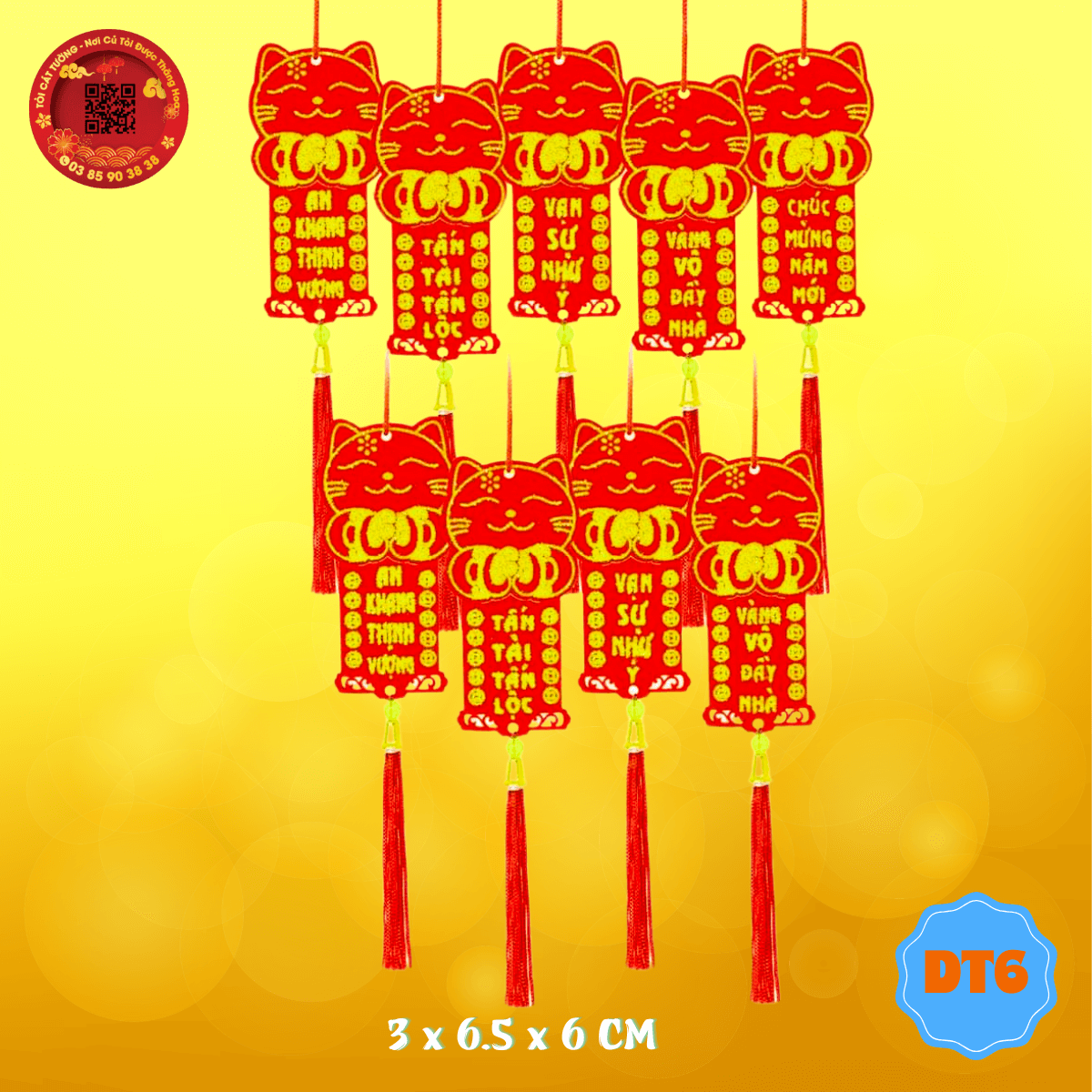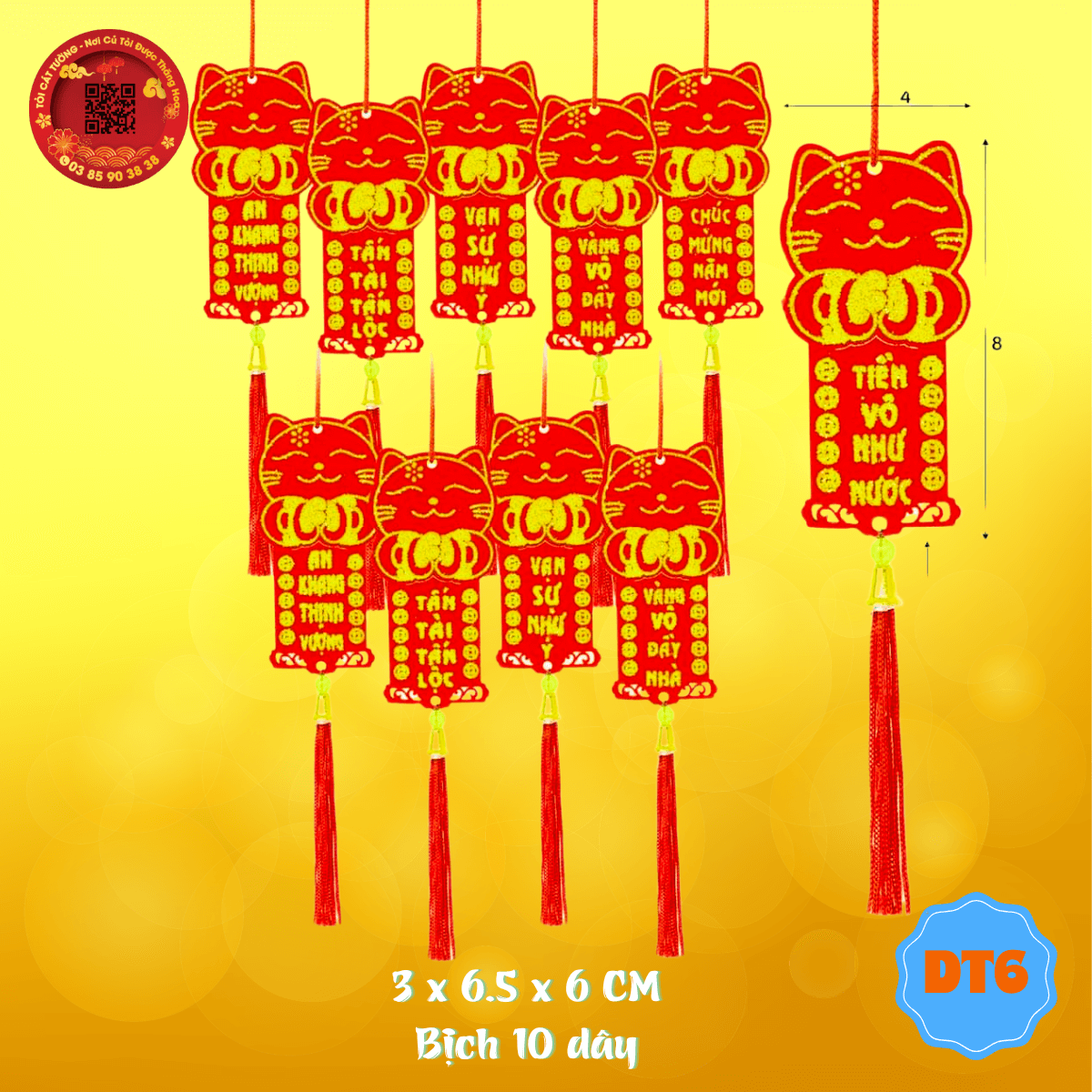 - Dây treo trang trí tết mèo may mắn cầm liễng có thiết kế mới lạ và độc đáo giúp bạn tha hồ trang hoàng nhà cửa thêm sang trọng và thêm ấm áp khi mùa xuân về