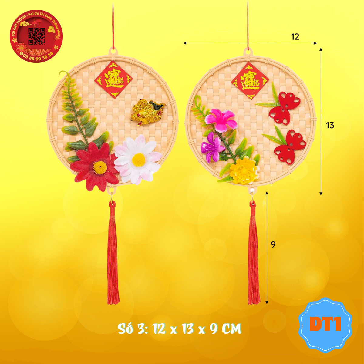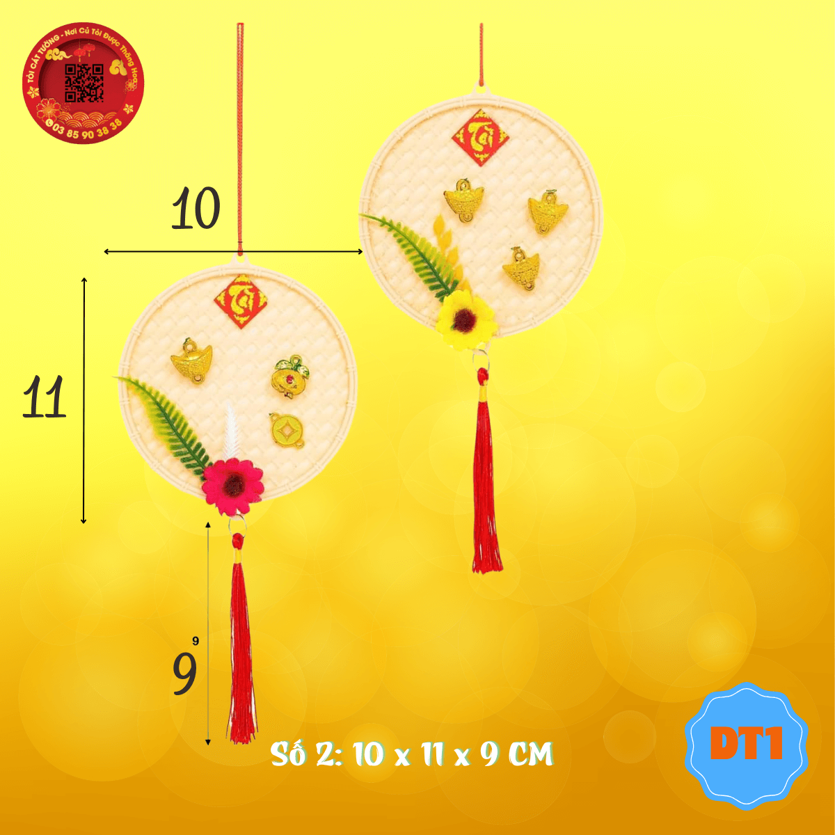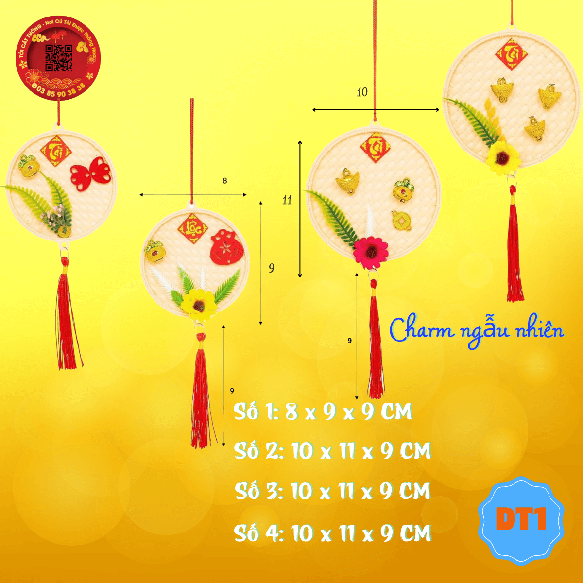 - Dây treo trang trí tết mẹt tròn gắn charm tài lộc có 4 kích thước, đẹp lộng lẫy từng chi tiết thích hợp trang trí mọi vị trí thêm sang trọng và độc đáo