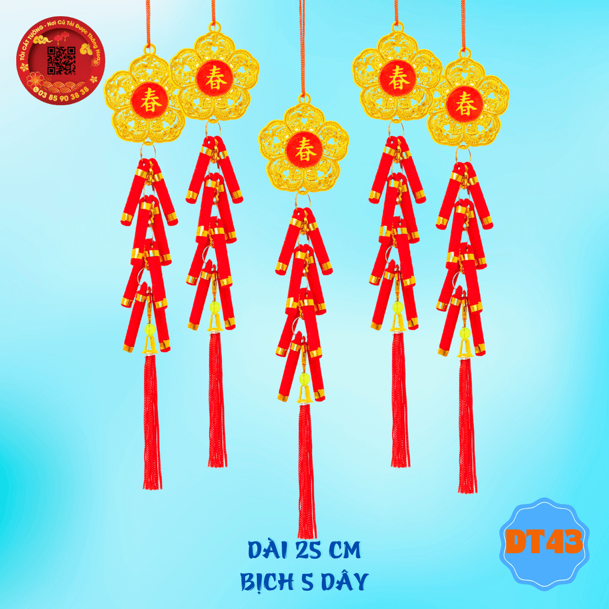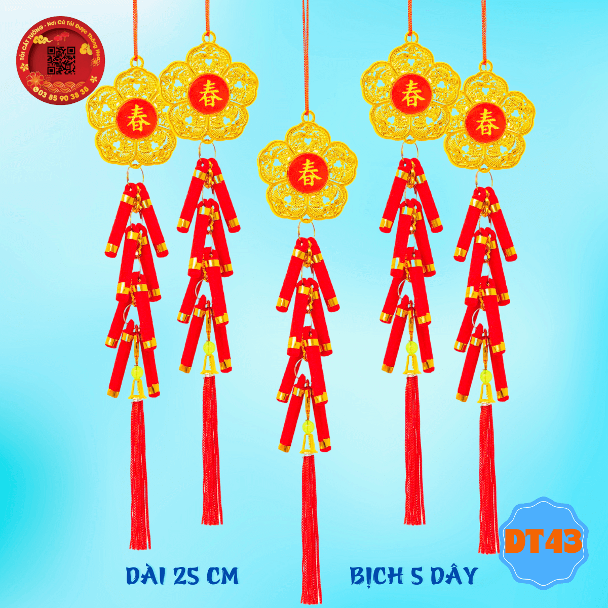- Dây treo trang trí tết pháo đỏ hoa mai tứ quý có thiết kế phổ thông giúp bạn tha hồ trang hoàng nhà cửa thêm sang trọng và thêm ấm áp khi mùa xuân về
