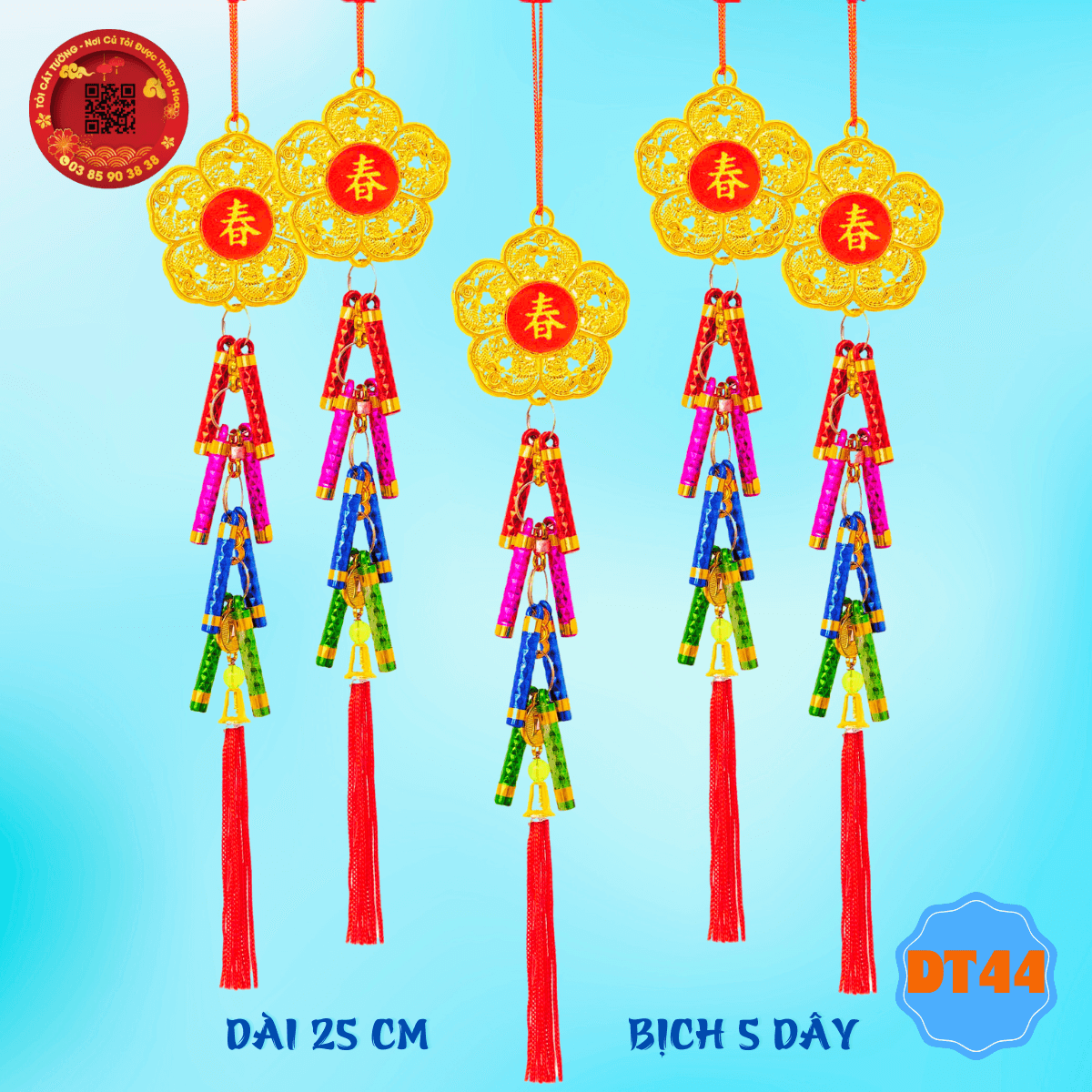 - Dây treo trang trí tết pháo màu hoa mai tứ quý có thiết kế phổ thông giúp bạn tha hồ trang hoàng nhà cửa thêm sang trọng và thêm ấm áp khi mùa xuân về