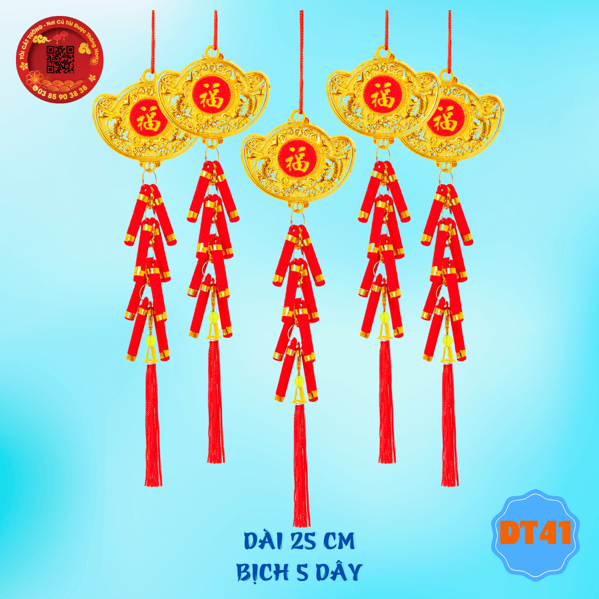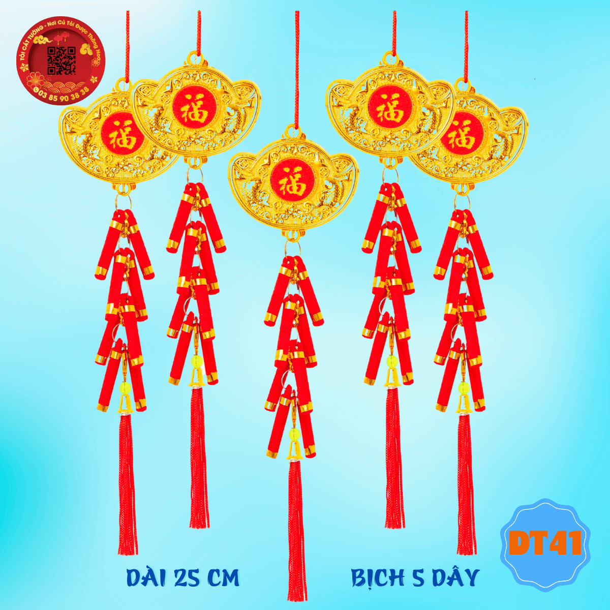- Dây treo trang trí tết thỏi vàng pháo đỏ thịnh vượng có thiết kế phổ thông giúp bạn tha hồ trang hoàng nhà cửa thêm sang trọng và thêm ấm áp khi mùa xuân về