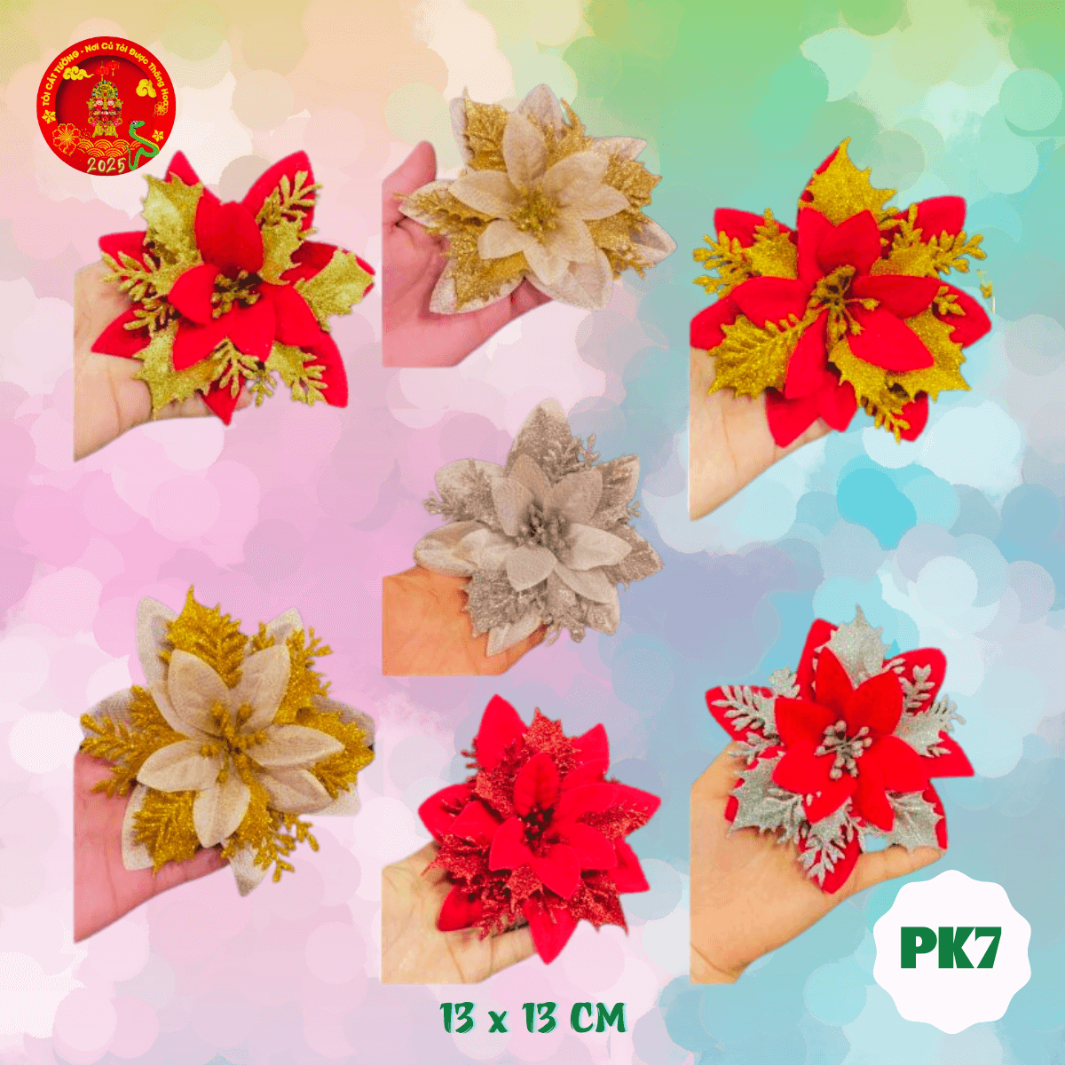 - Chất liệu: Vải nhung phủ nhũ kim tuyến