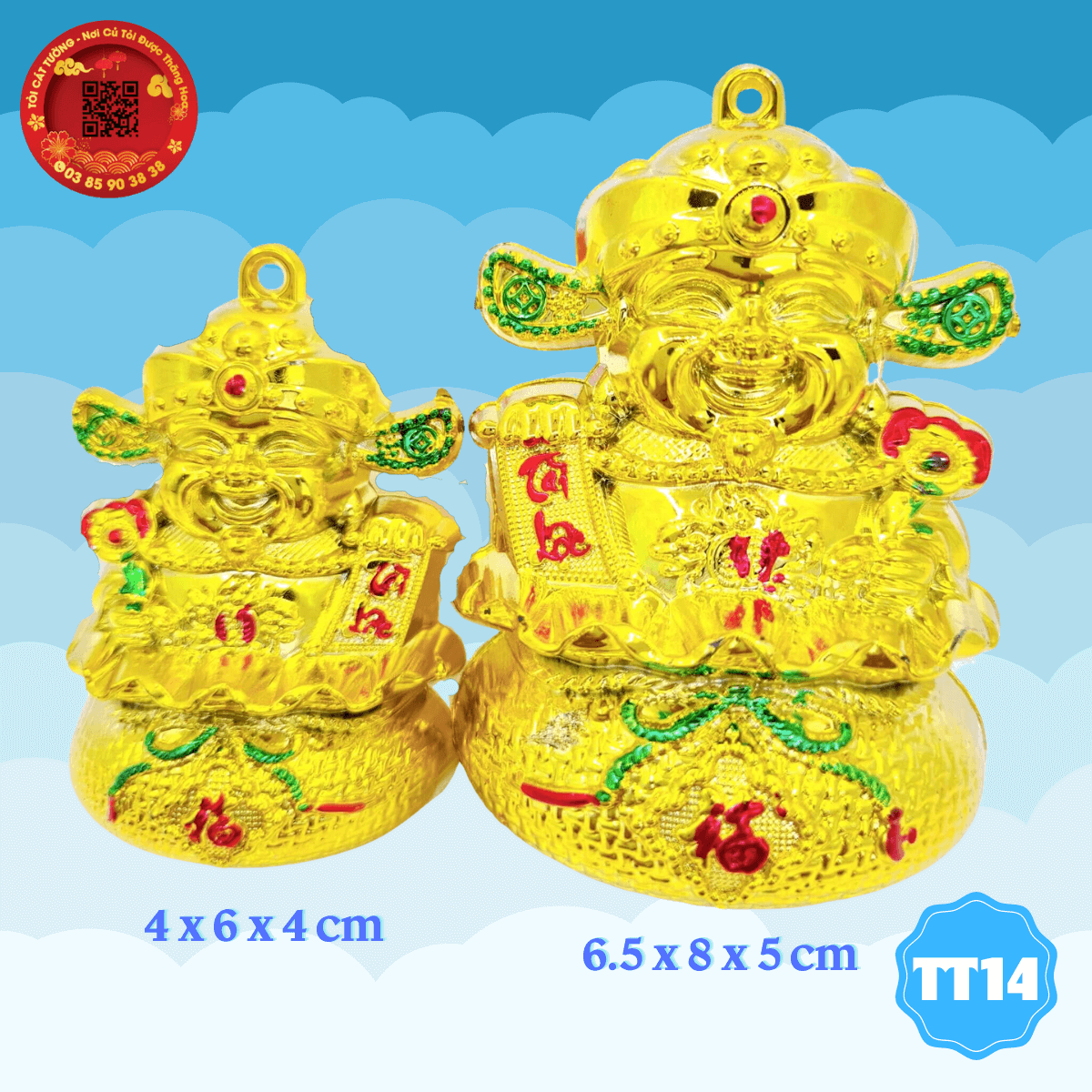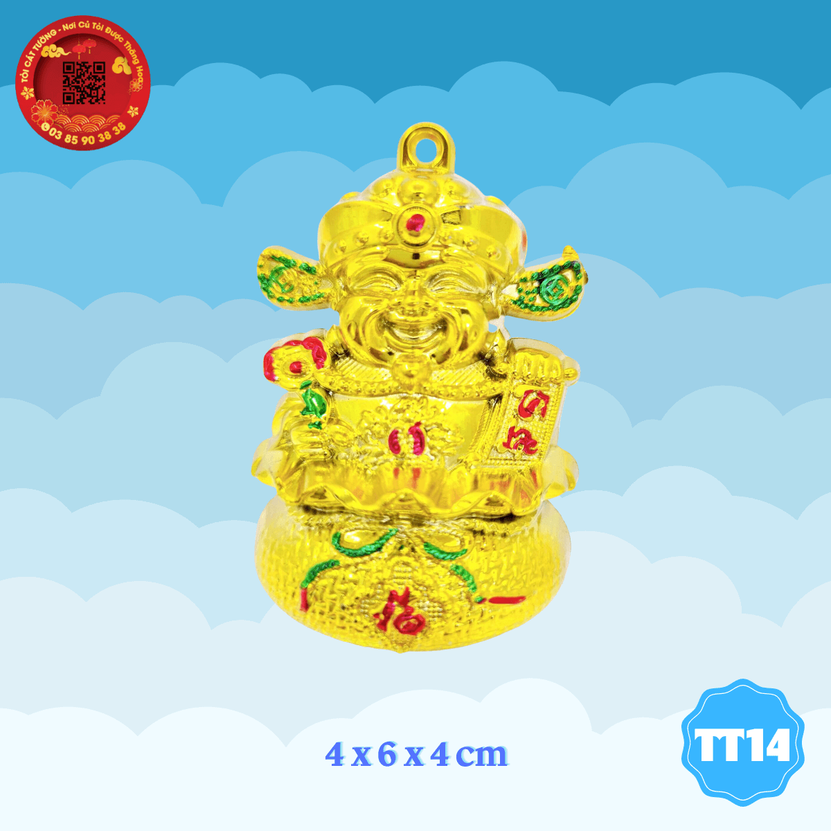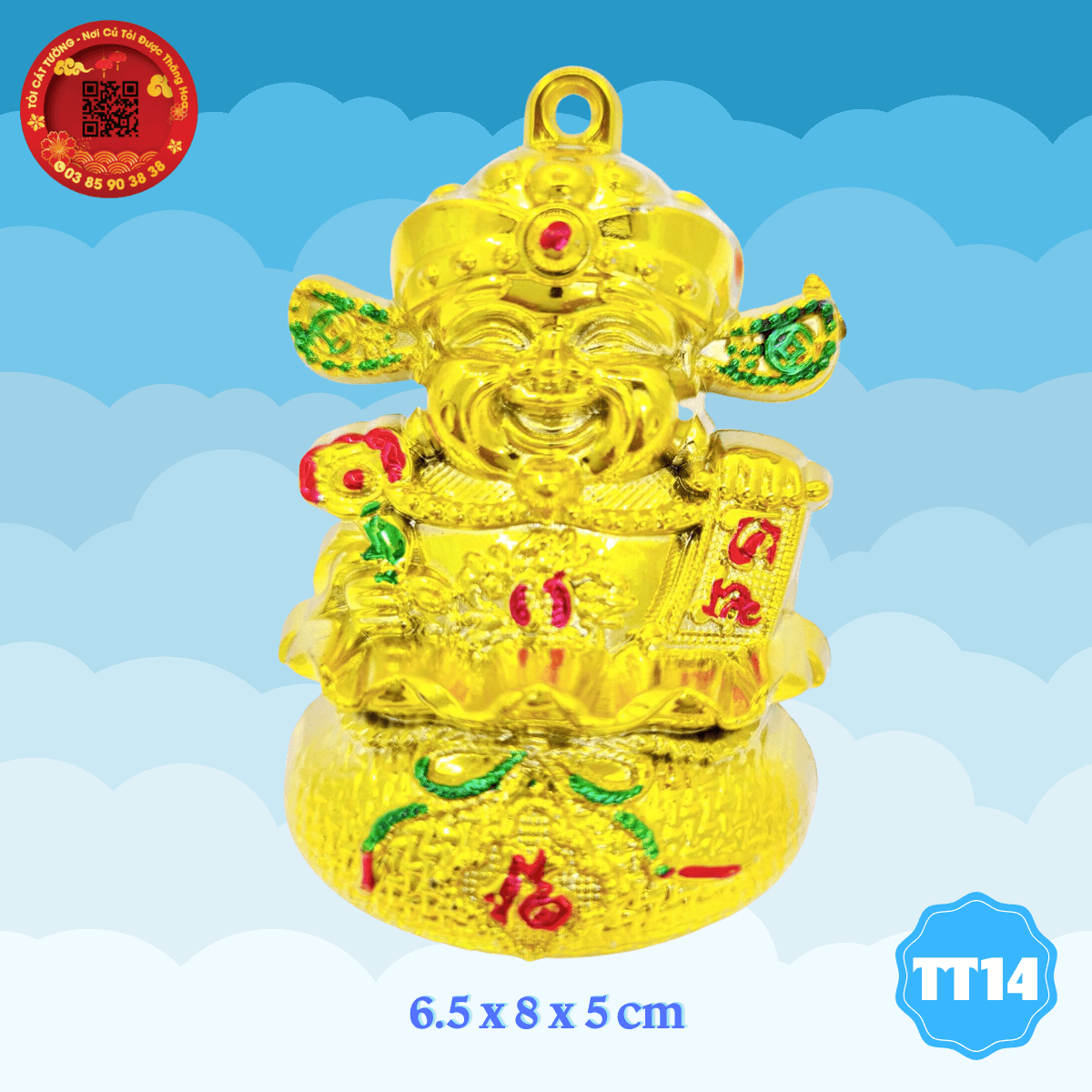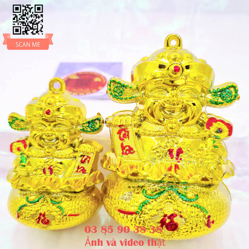 - Ông thần tài ngồi trong túi vàng đặc sắc trong từng chi tiết, gương mặt ông thần tài cười hoan hỷ, tay cầm liễng tài lộc mang đến hưng vượng cho gia chủ