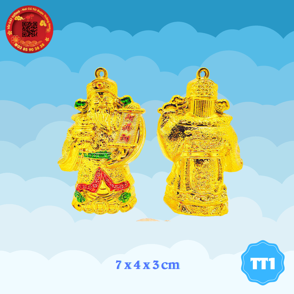 - Ông thần tài tới hoan hỉ, tươi vui, một tay cầm liễng, một tay cầm hủ vàng phú quý giúp bạn trang trí tháp tỏi ngọc thực lộng lẫy