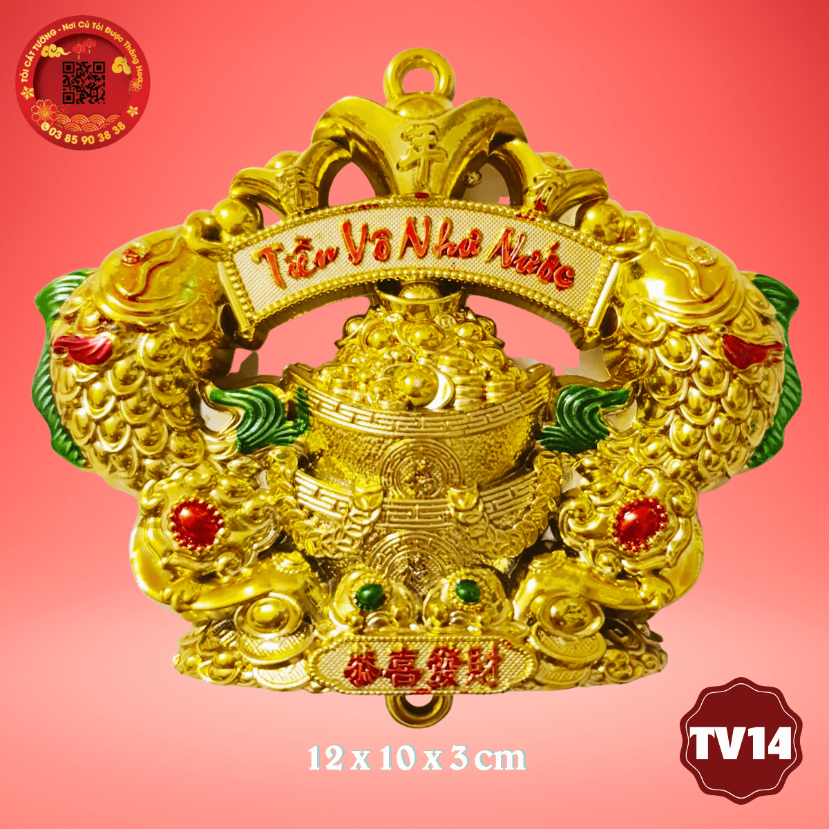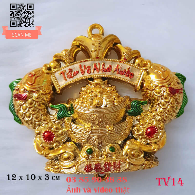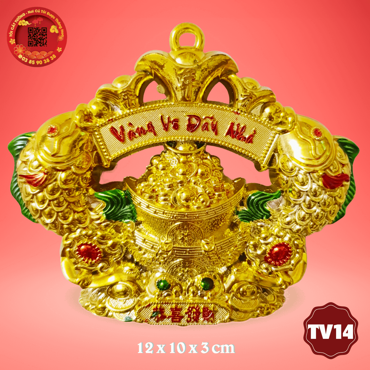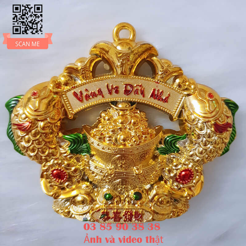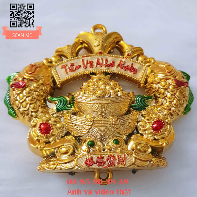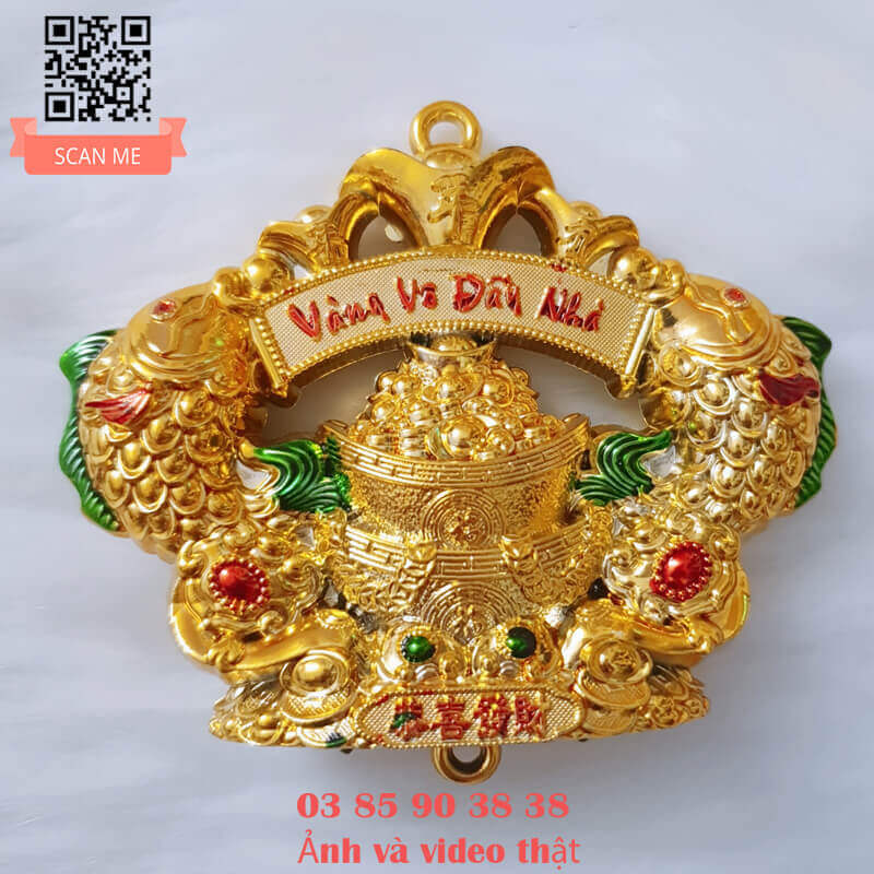 - Cặp cá chép ôm thỏi vàng có kích cỡ lớn, cứng cáp, màu sắc tươi sáng, thiết kế xịn sò giúp trang trí tết thêm lộng lẫy và trang trọng