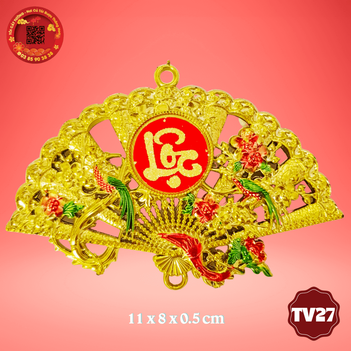 - Quạt vàng phúc lộc đẹp sắc sảo từng chi tiết nhỏ kết hợp màu vàng bóng sáng kiêu sa giúp xua đuổi yêu ma, lời trù quến của đối thủ, chiêu tài chiêu lộc cho mọi tháp tỏi ngũ cốc