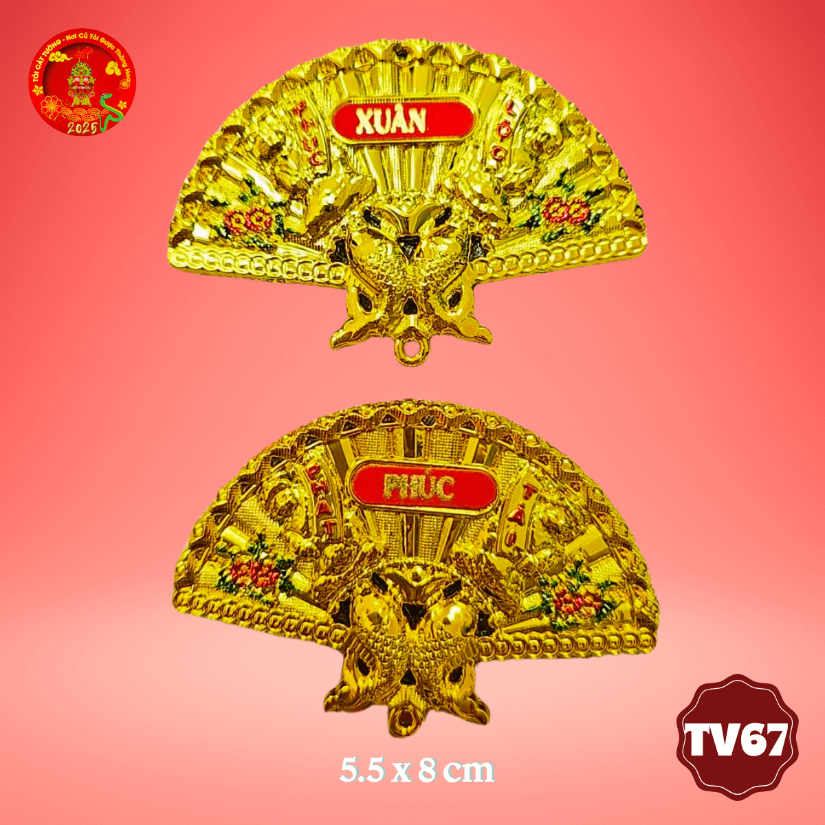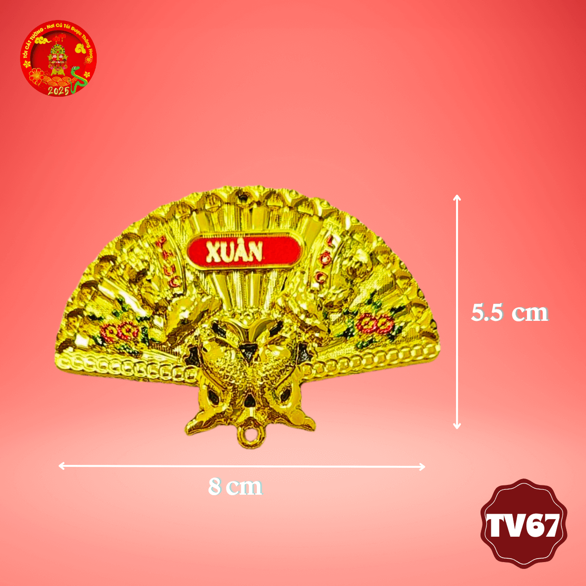 - Quạt vàng thần tài phúc xuân có kích thước chuẩn chỉnh, đẹp rực rỡ từng chi tiết thích hợp trang trí mọi vị trí thêm lộng lẫy và ý nghĩa