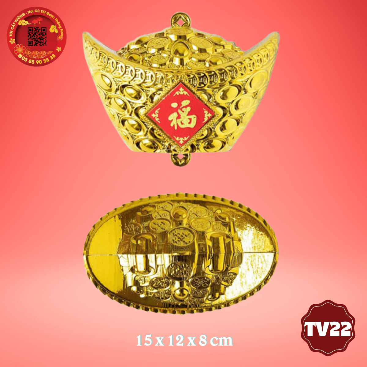 - Thỏi vàng lớn chữ phước có kích thước lớn giúp bạn trang trí tháp tỏi phong thủy đẹp tuyệt vời trong từng chi tiết
