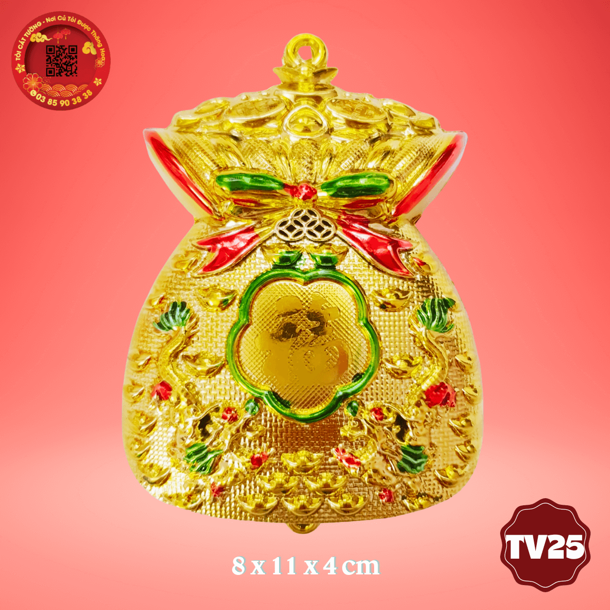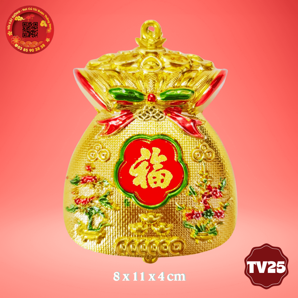 - Túi vàng lớn mai đào thổi làn gió mùa xuân sung túc, an lạc, tài lộc cho mỗi tháp tỏi phong thủy