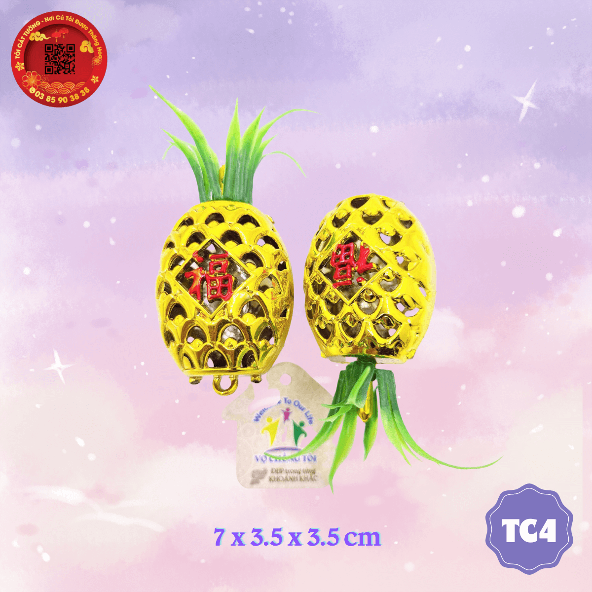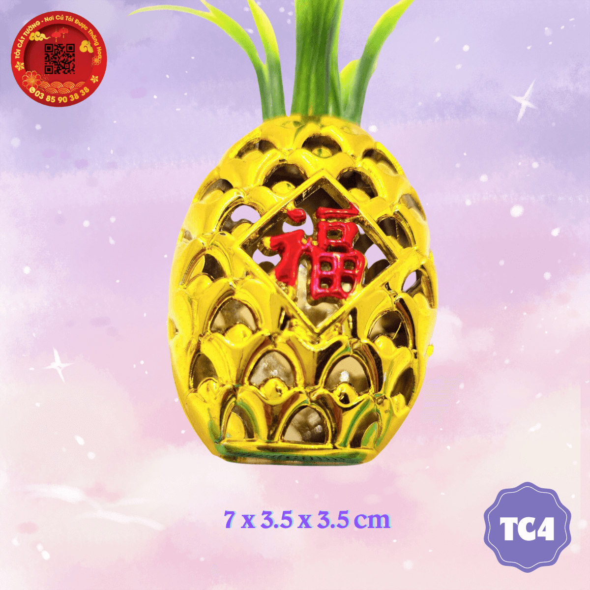- Trái thơm khóm chữ phúc thiết kế sắc sảo từng chi tiết, kích cỡ dễ dàng trang trí mọi nơi cho tháp tỏi phong thủy thêm phần nguy nga, tráng lệ và đầy ý nghĩa