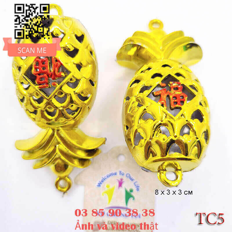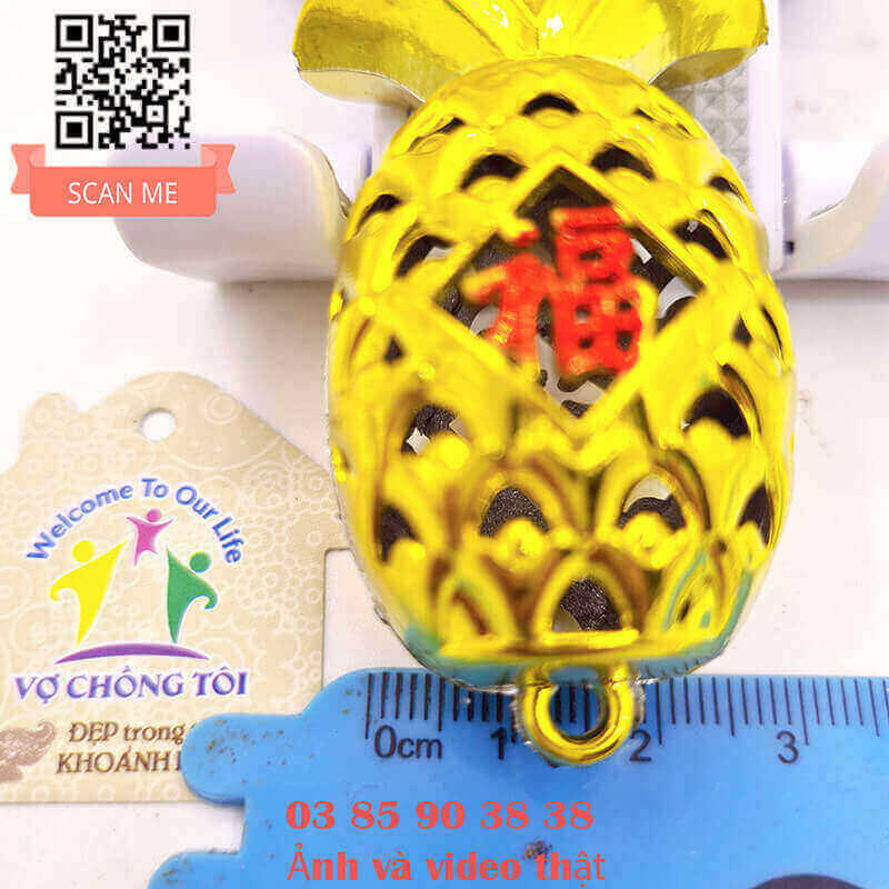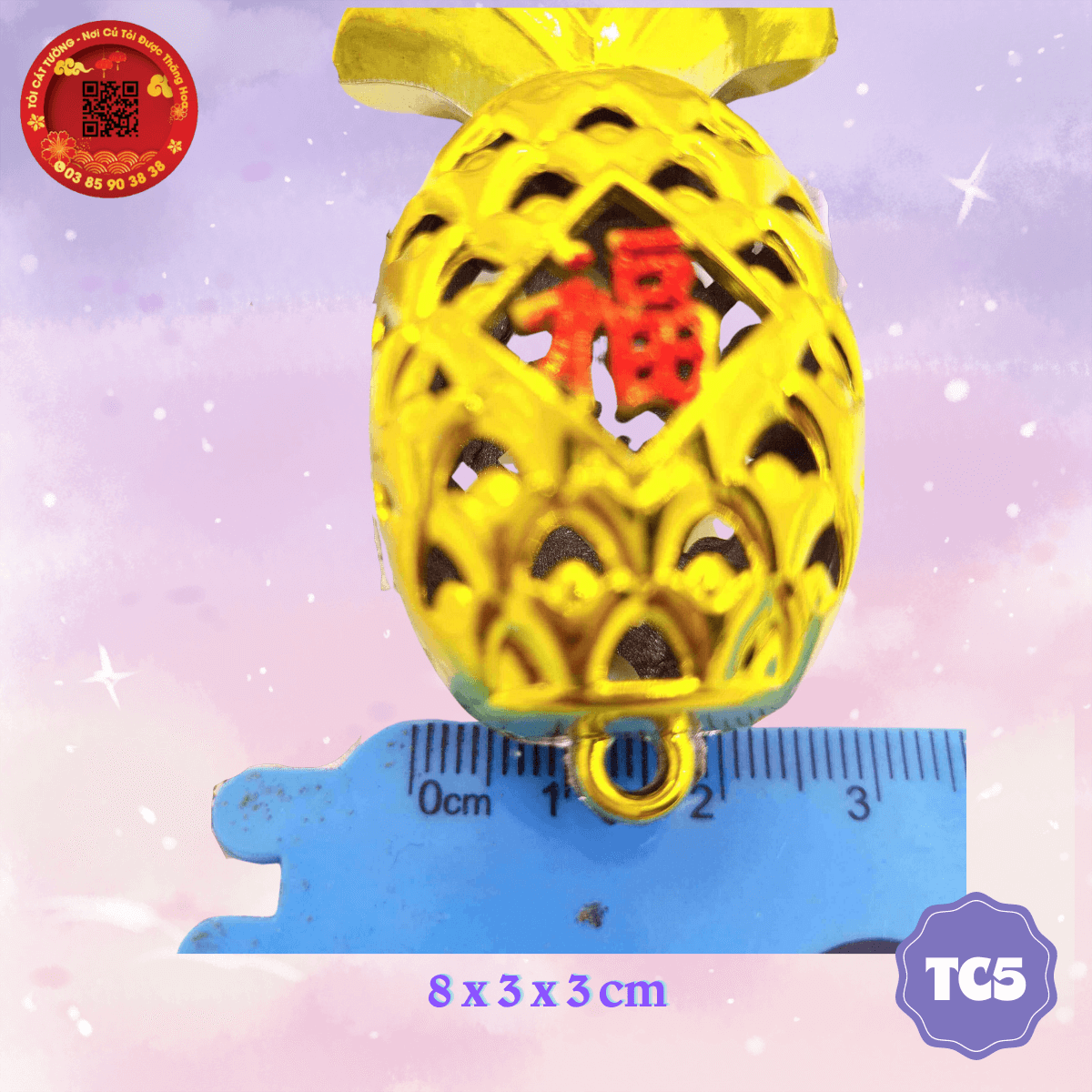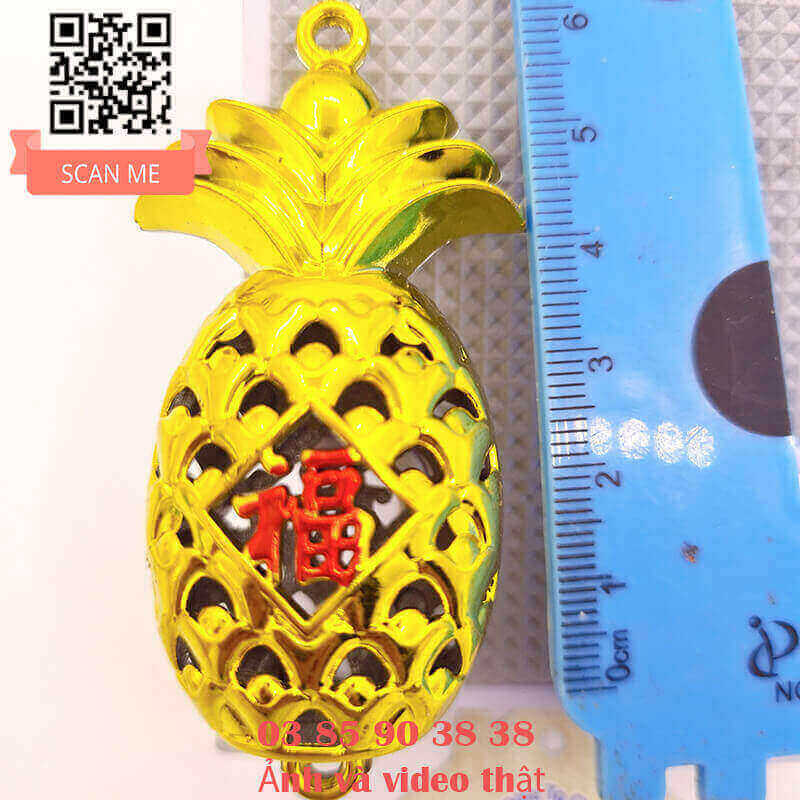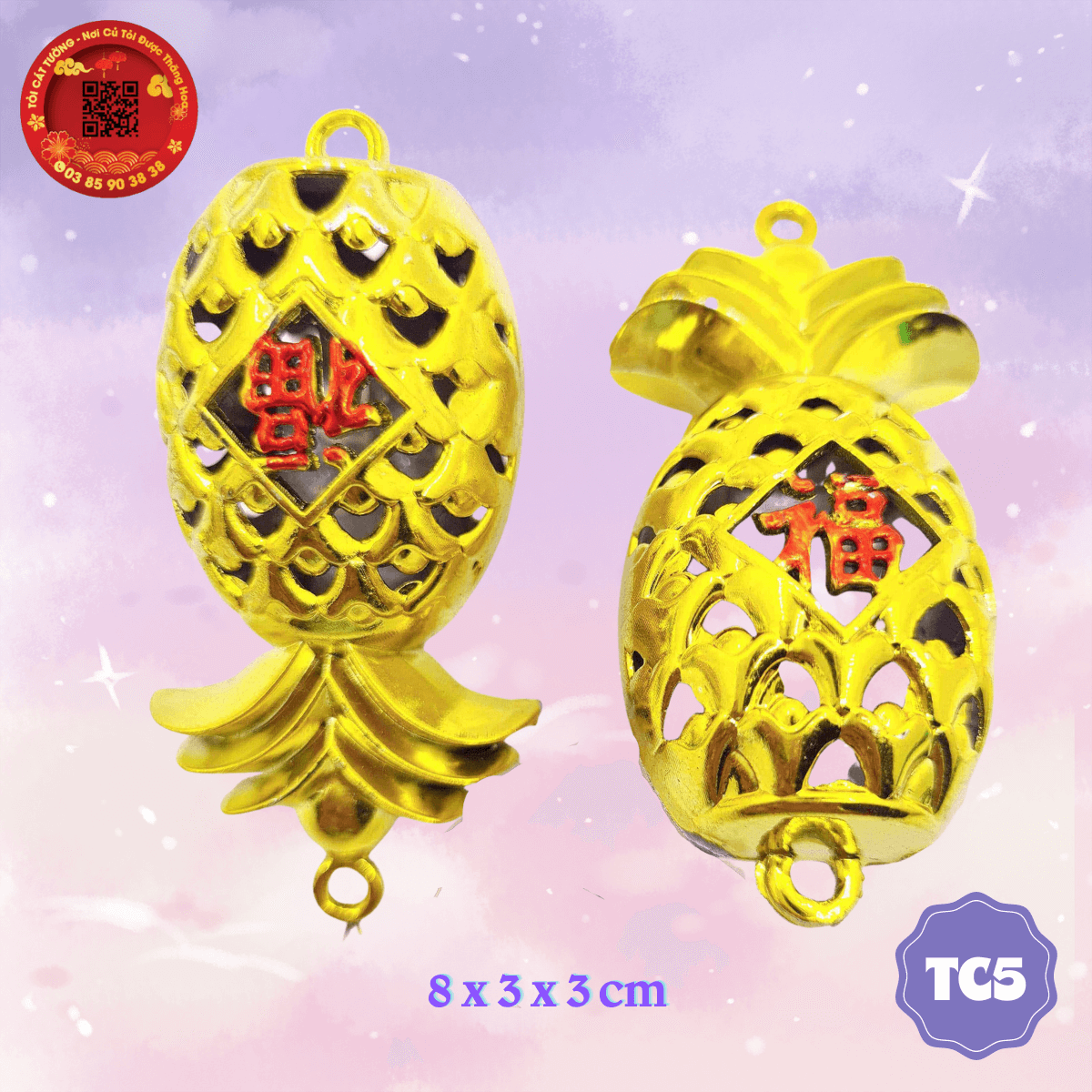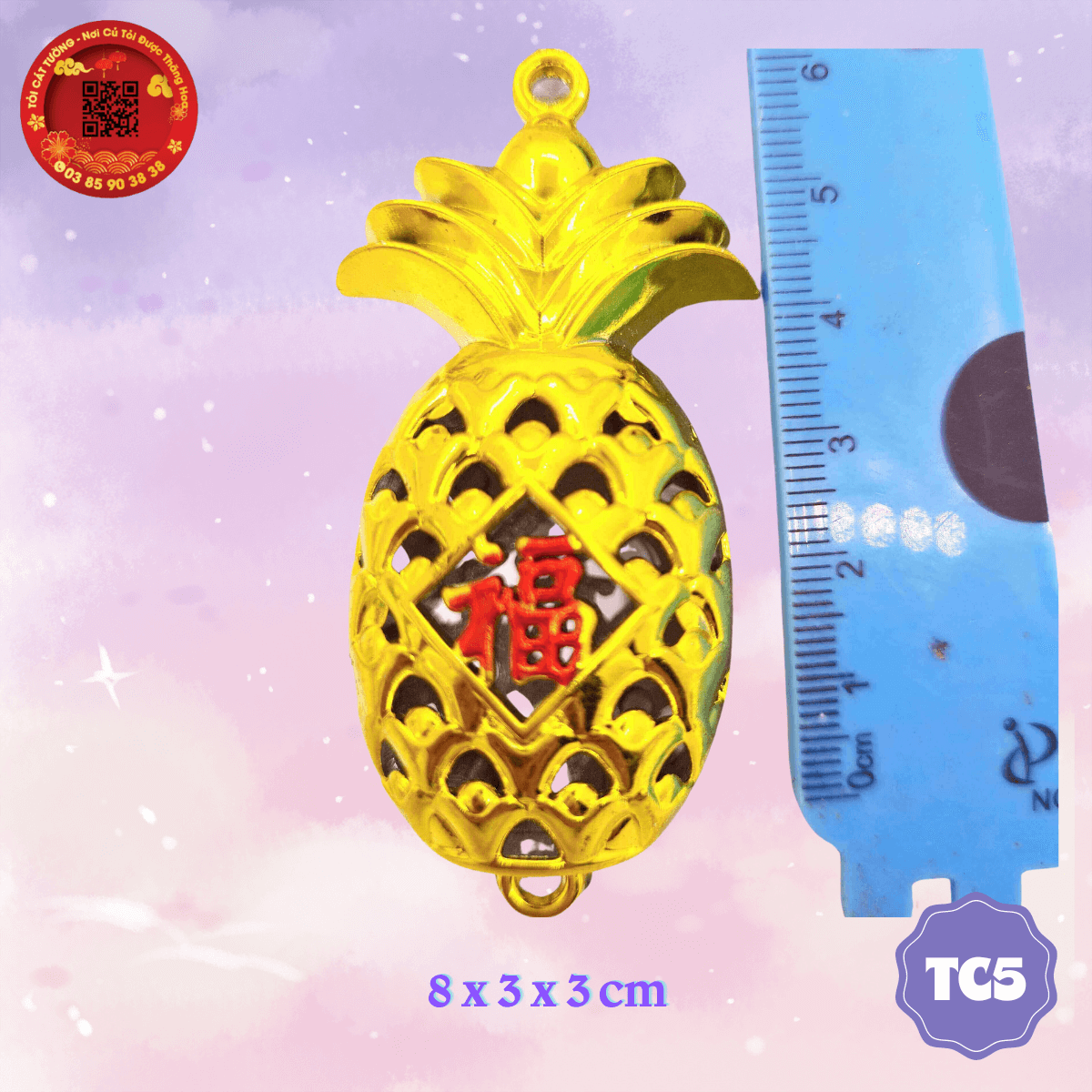 - Trái thơm khóm vàng chữ phước mang ý nghĩa của sự phát triển mạnh mẽ trong công việc làm ăn, hay ngụ ý mong muốn con cháu đầy nhà.
