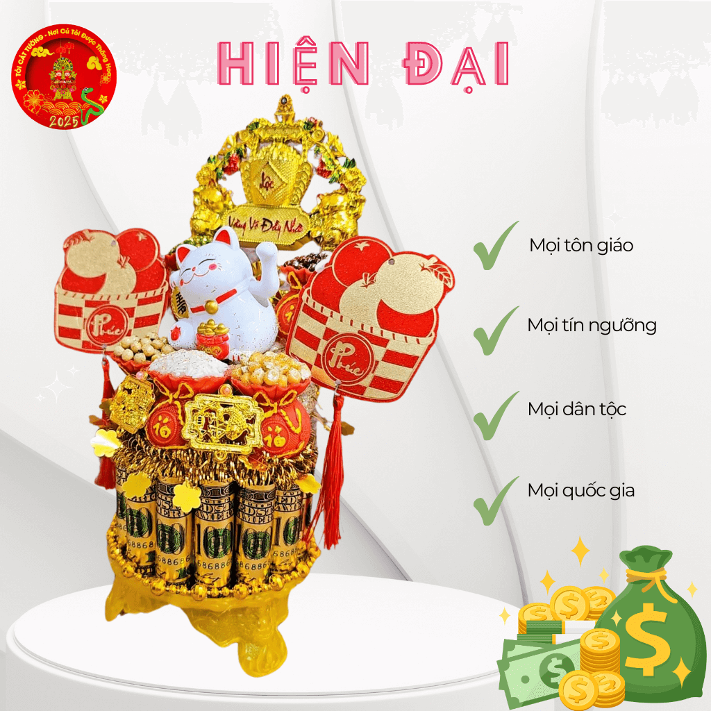 Lấy tông màu vàng tươi sáng làm chủ đạo, Tháp tiền đô usdnhư vàng như ngọc trang hoàng trên bàn thờ giúp nhà cửa thêm sáng láng và rực rỡ, hút tài vận cho cả gia đình.