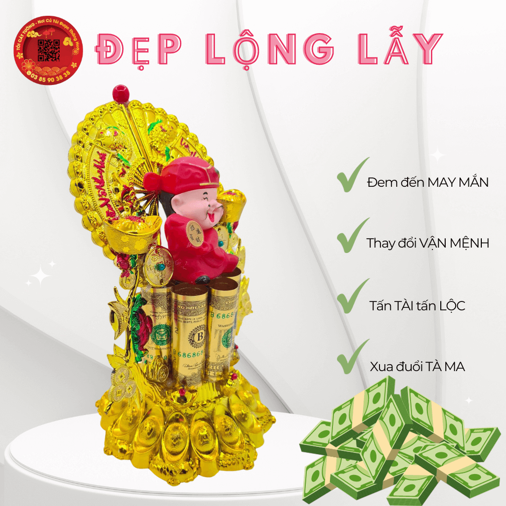 - Tác dụng phong thủy: mang lại may mắn ngập tràn, tài lộc vô biên, tiền bạc dồi dào