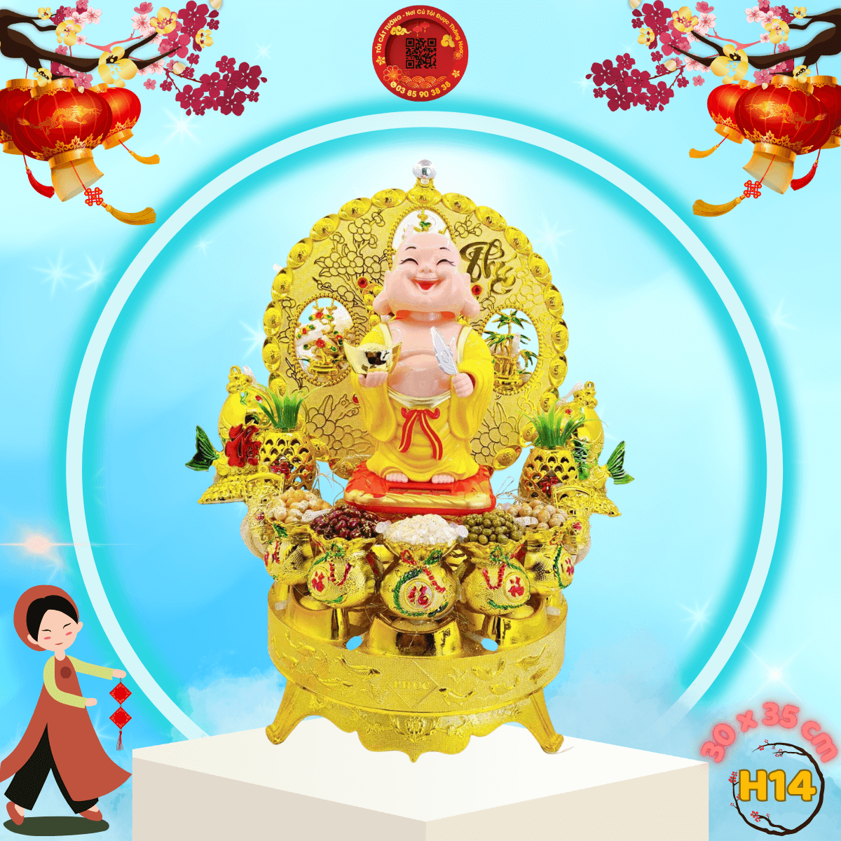 - Chiều Ngang THÊM ĐINH 30 cm x Chiều Cao NGHINH PHÚC 35 cm