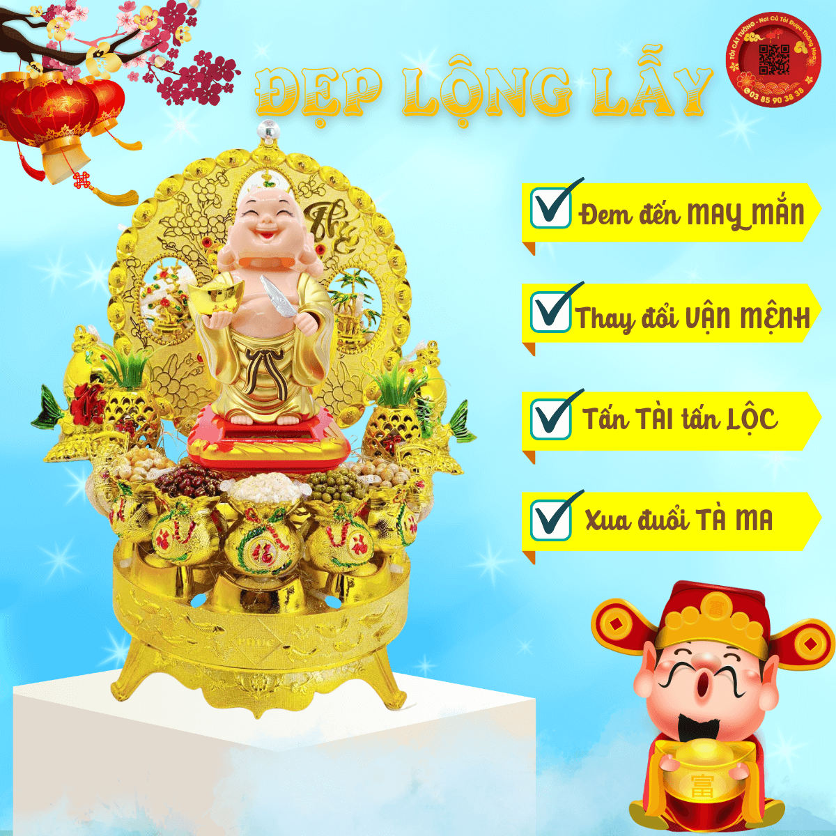 - Tháp tỏi di lặc tài lộc năng lượng mặt trời đem đến nguồn năng lượng tích cực, may mắn, tài lộc và bình an cho cả nhà