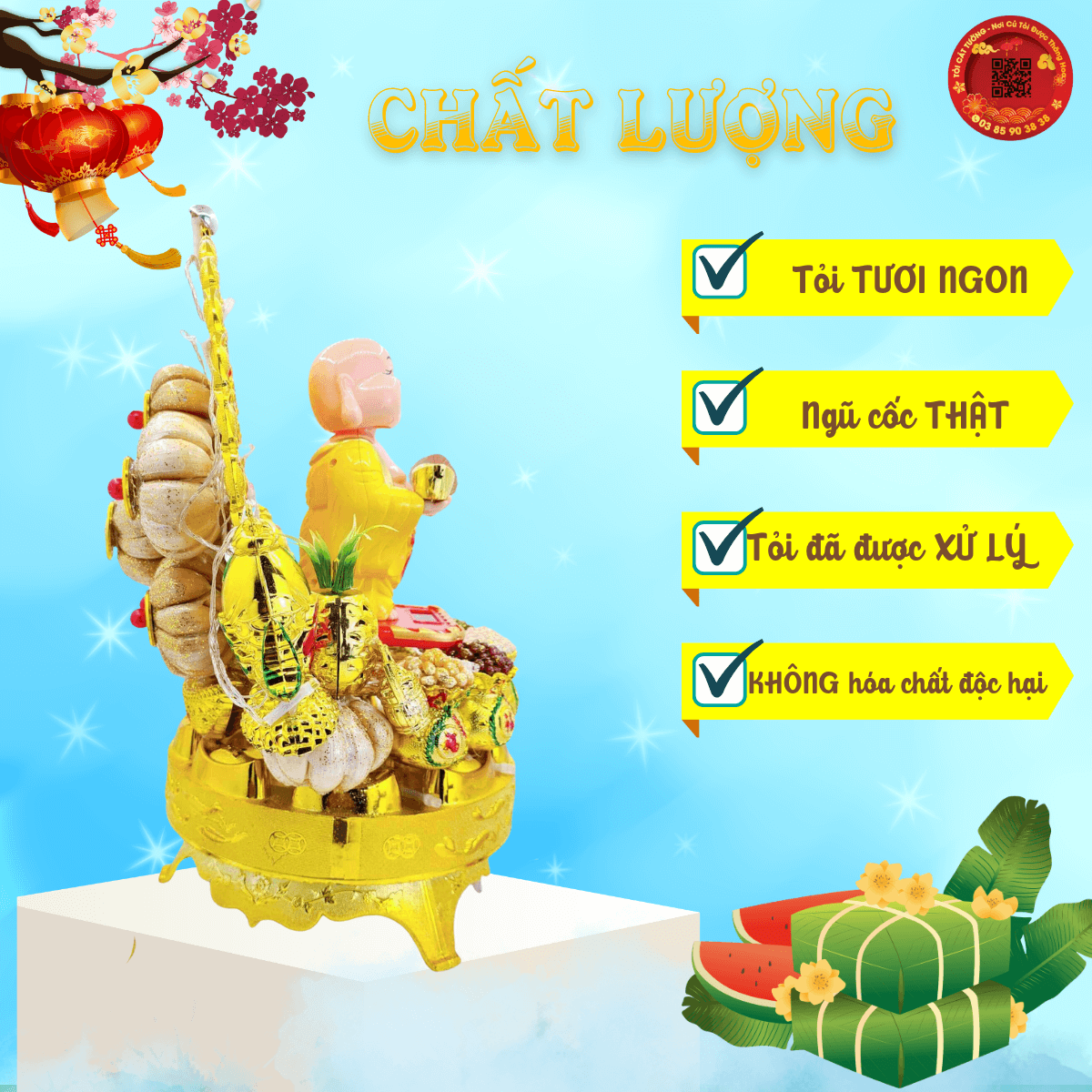- Sử dụng đúng 8 củ tỏi tròn trịa nhất, đẹp đẽ nhất lấy đúng chữ "BÁT" trong tiếng Hán đem đến ý nghĩa "PHÁT TÀI" viên mãn, trường tồn theo thời gian cho gia chủ