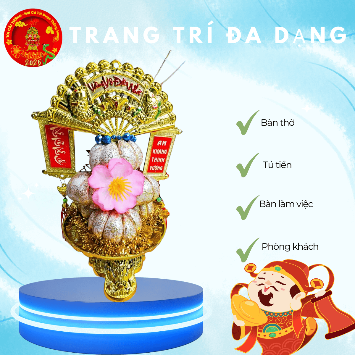 Lấy tông màu vàng tươi sáng làm chủ đạo, đĩa tỏinhư vàng như ngọc trang hoàng trên bàn thờ giúp bàn thờ thêm sáng láng và rực rỡ, hút tài vận cho cả gia đình.