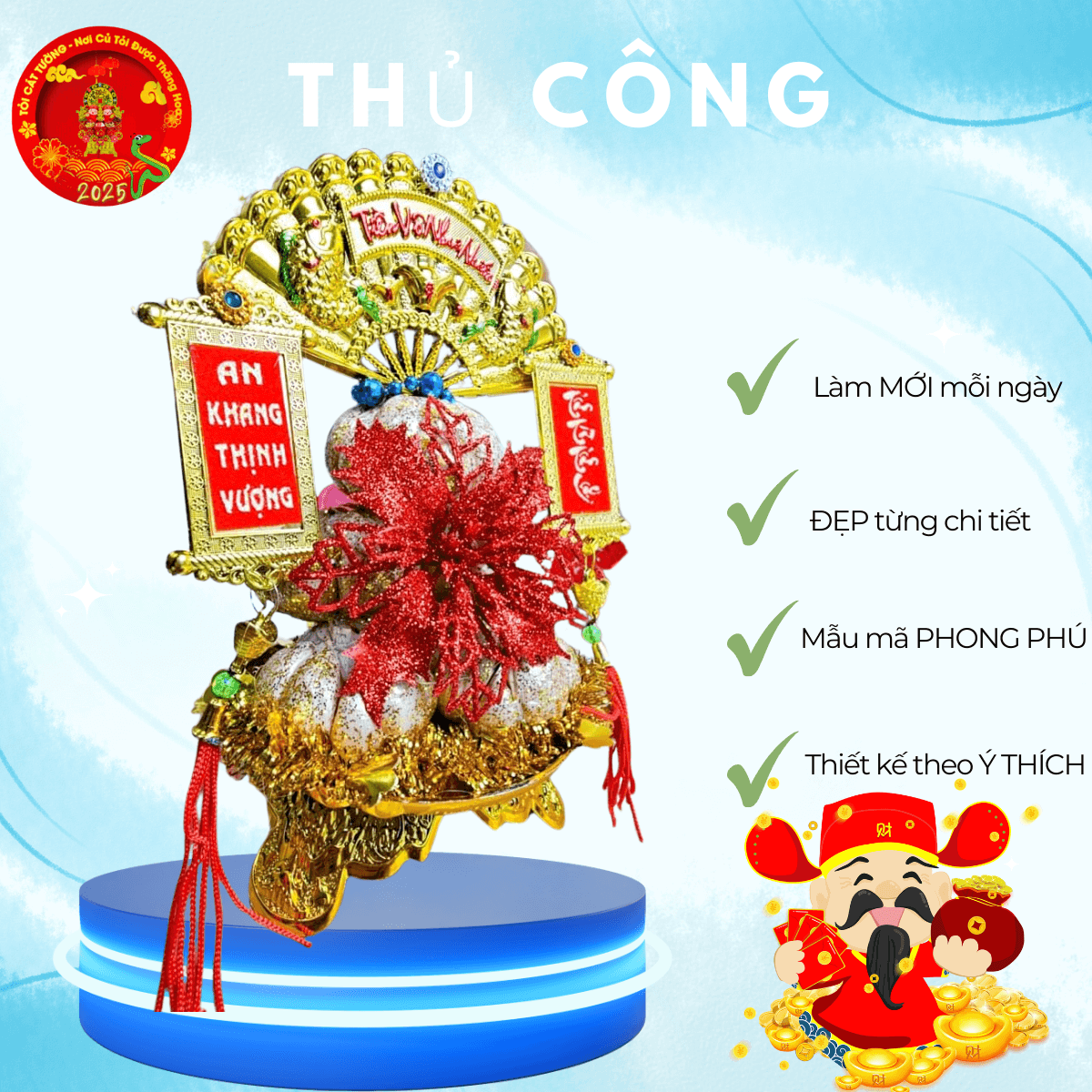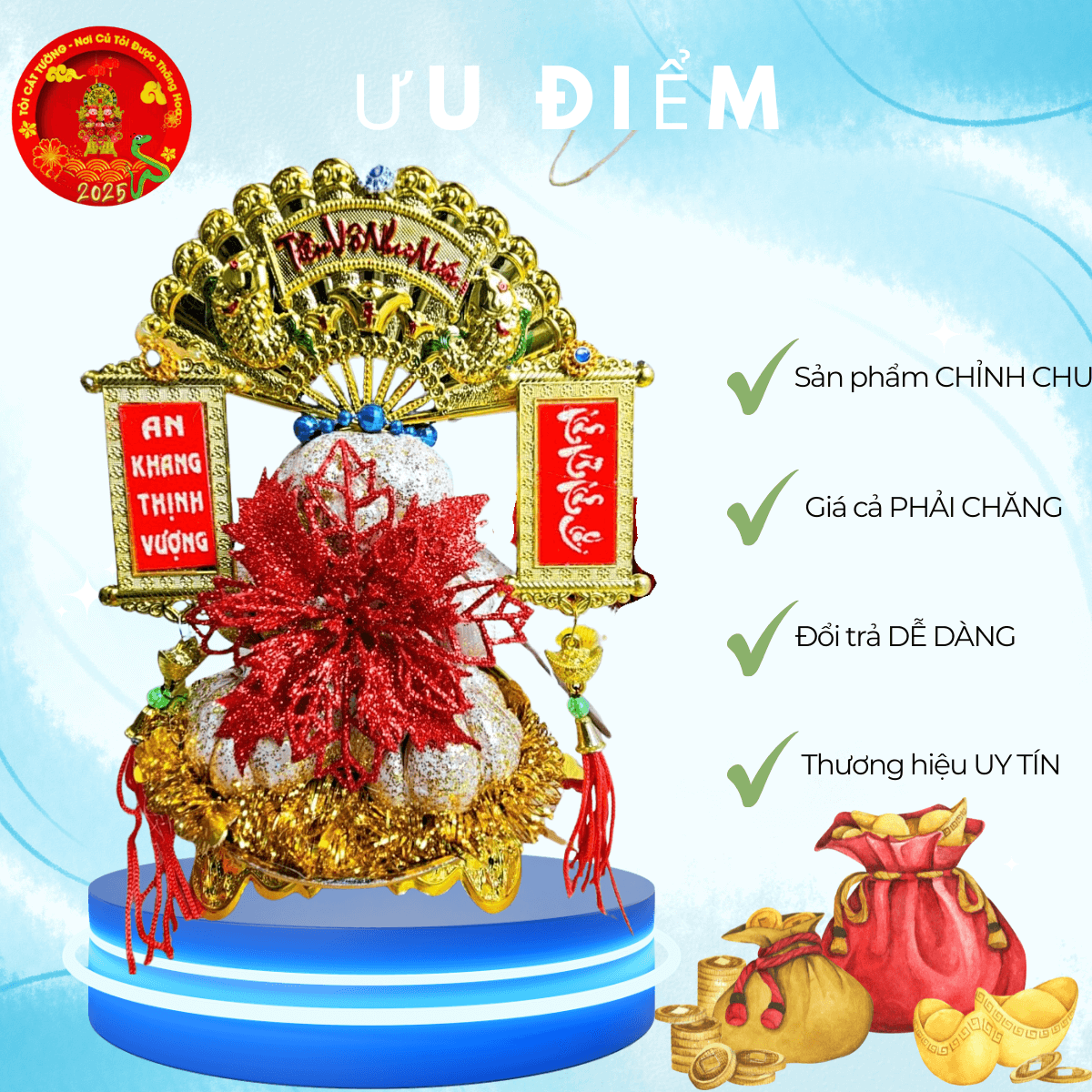 TỎI CÁT TƯỜNG hân hạnh mang đến Bông tỏi ông địa 6 củ cát tường đơn giản trong thiết kế nhưng lại hiện đại theo từng năm bởi những hình tượng mới xin hịn kết hợp những câu chúc đầy ý nghĩa khi xuân về!