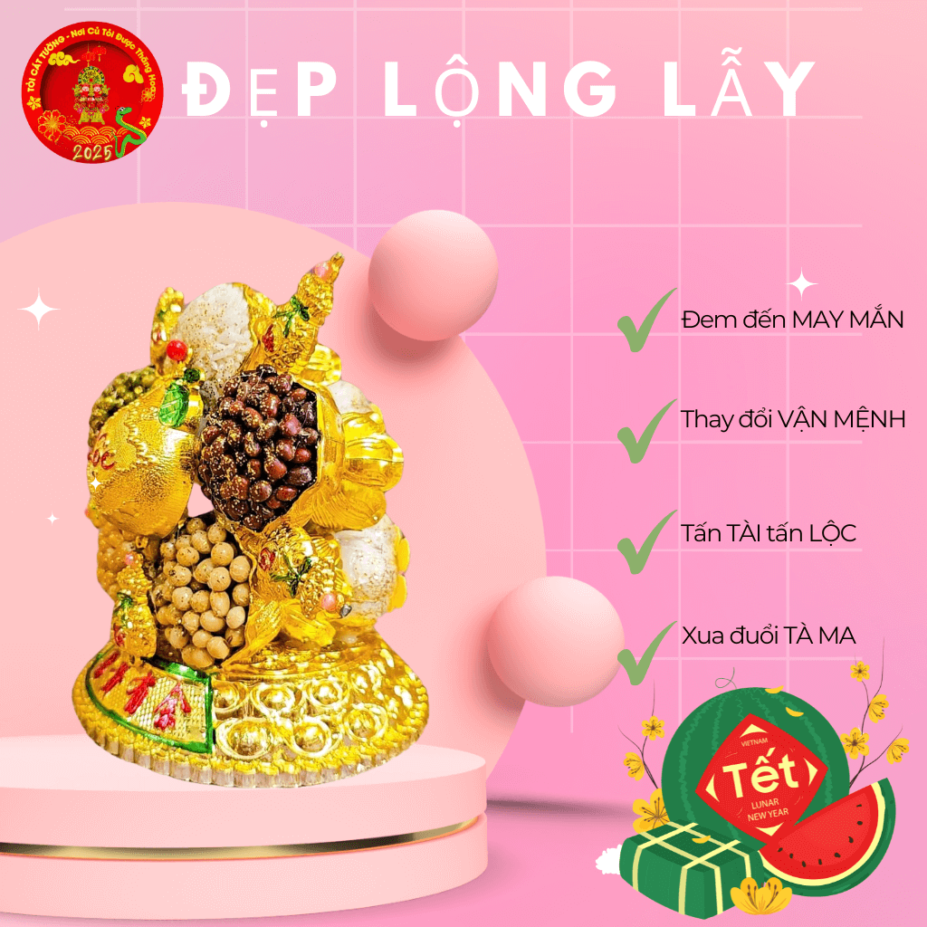 - Lấy thuyết phong thủy kim - mộc- thủy- hỏa - thổ tương sinh tương hỗ làm chủ đạo kết hợp những củ tỏi tròn trịa đầy đặn mang đến sự sung túc viên mãn.