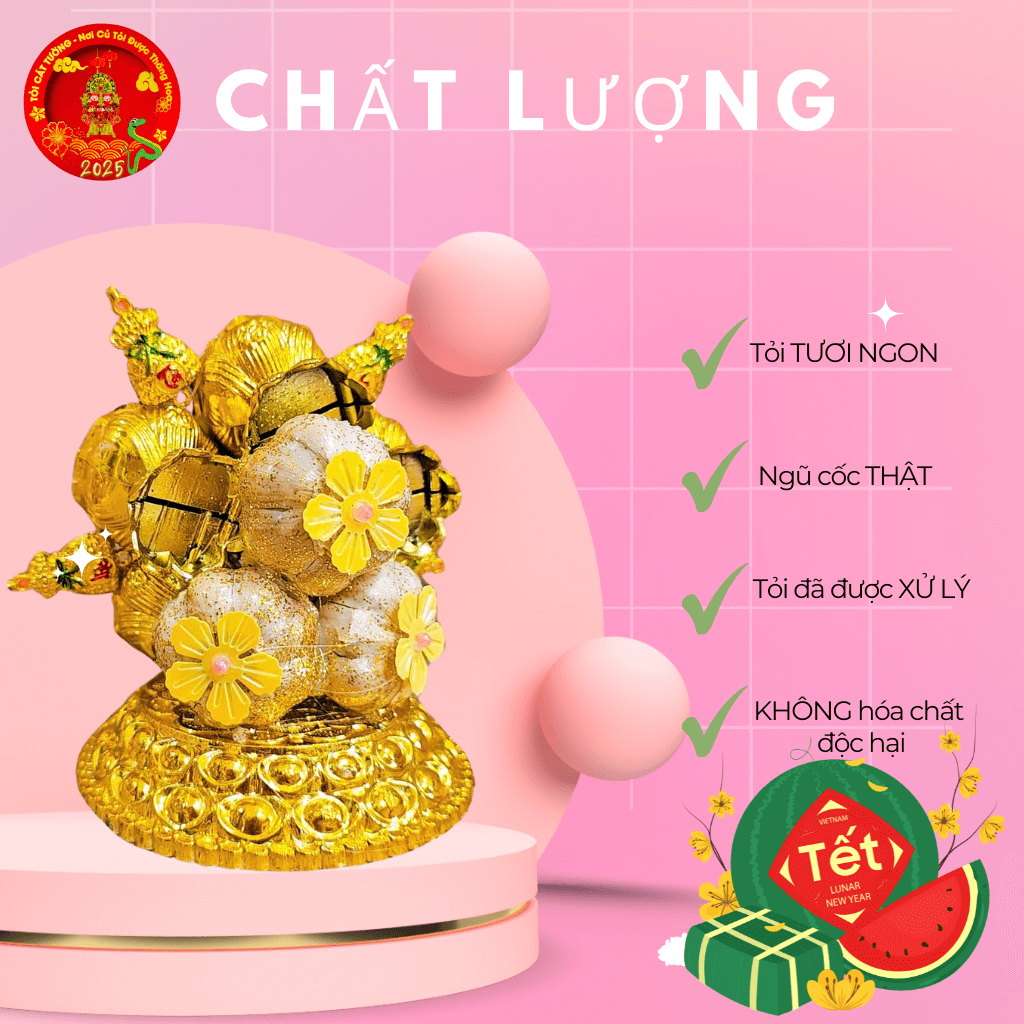Những tép tỏi được chọn lựa kỹ lưỡng và sắp xếp theo chuẩn phong thủy giúp mang lại tài lộc cho gia chủ. Bạn không cần lo lắng phải chịu đựng mùi tỏi nồng nặc của chúng đâu vì chúng tôi đã xử lý hoàn hảo mùi hương khó chịu đó rồi nhé!