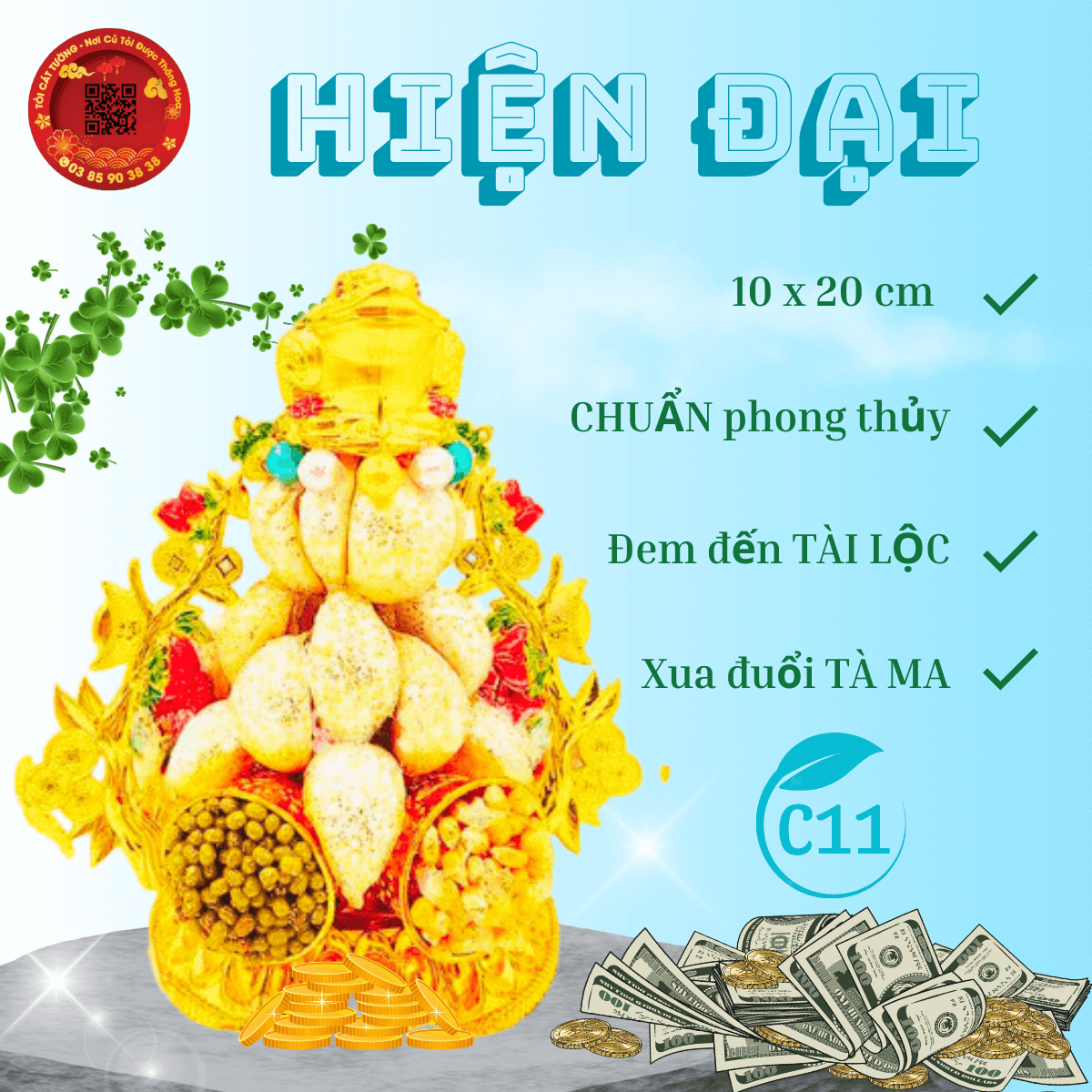 - Kích thước chiều ngang TIẾN BẢO 10 cm x chiều cao LỢI ÍCH 18 cm