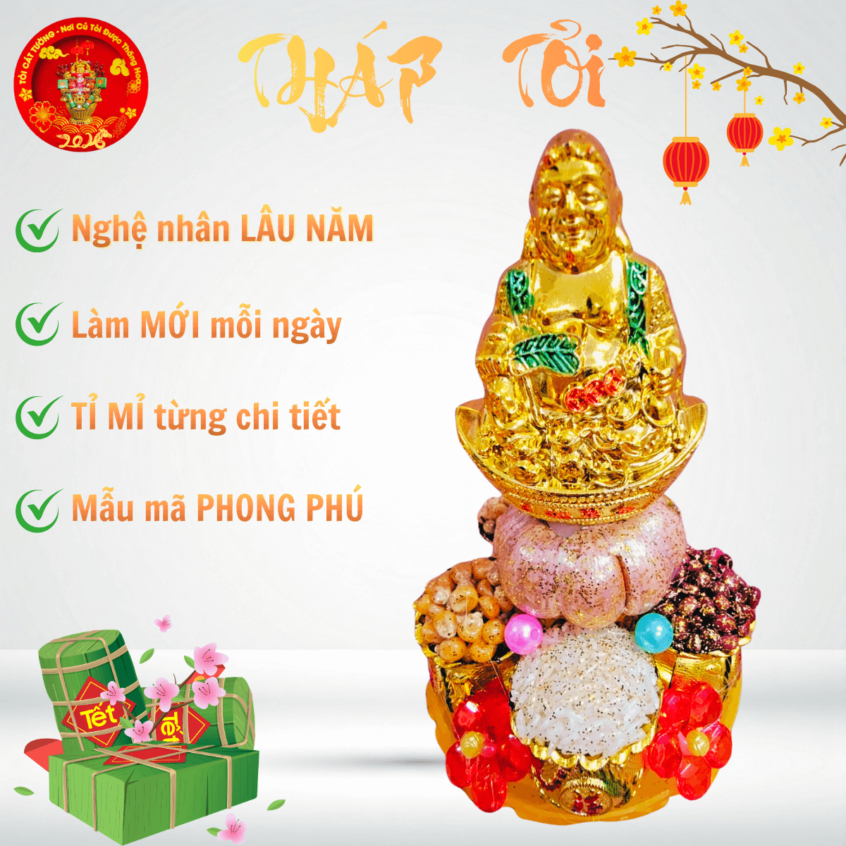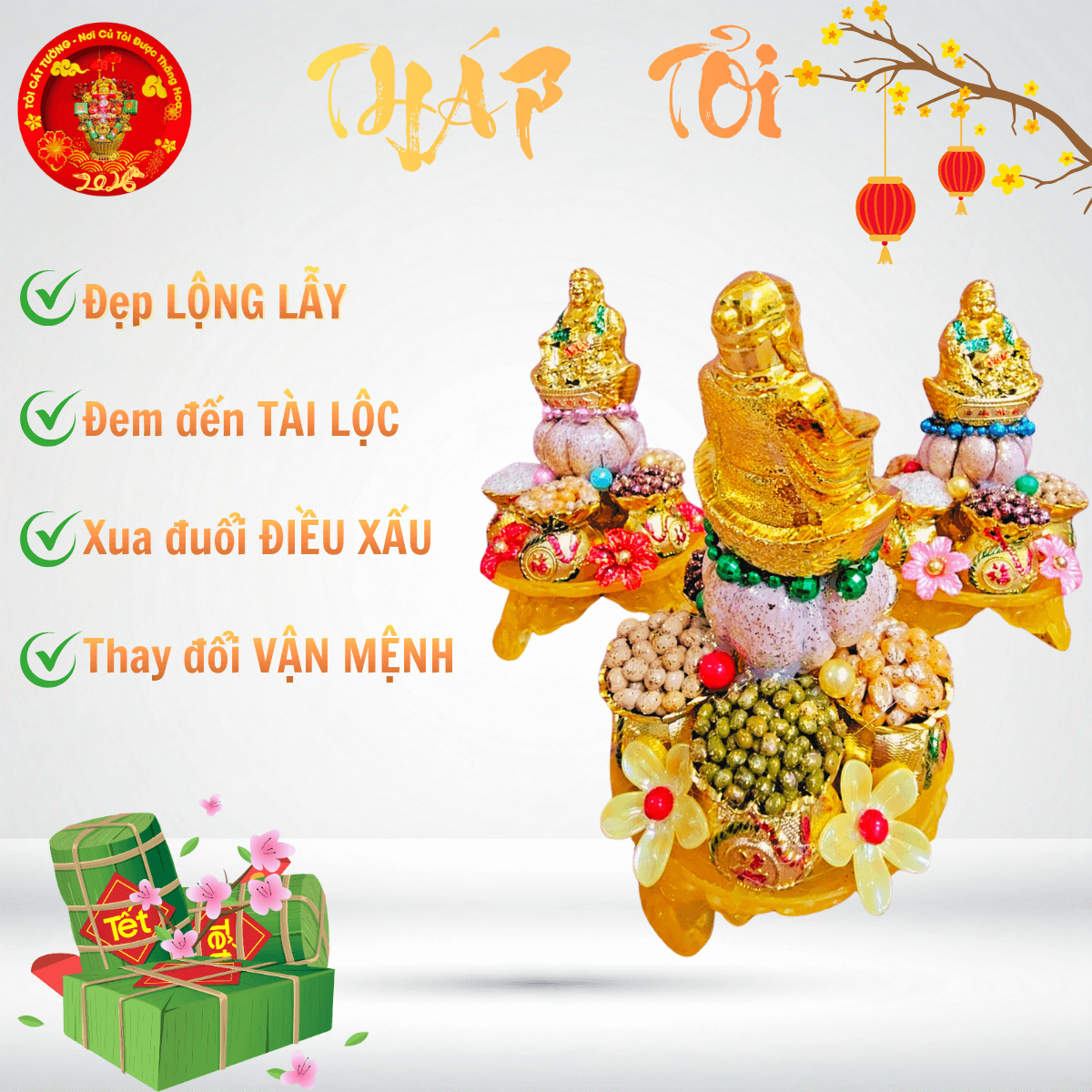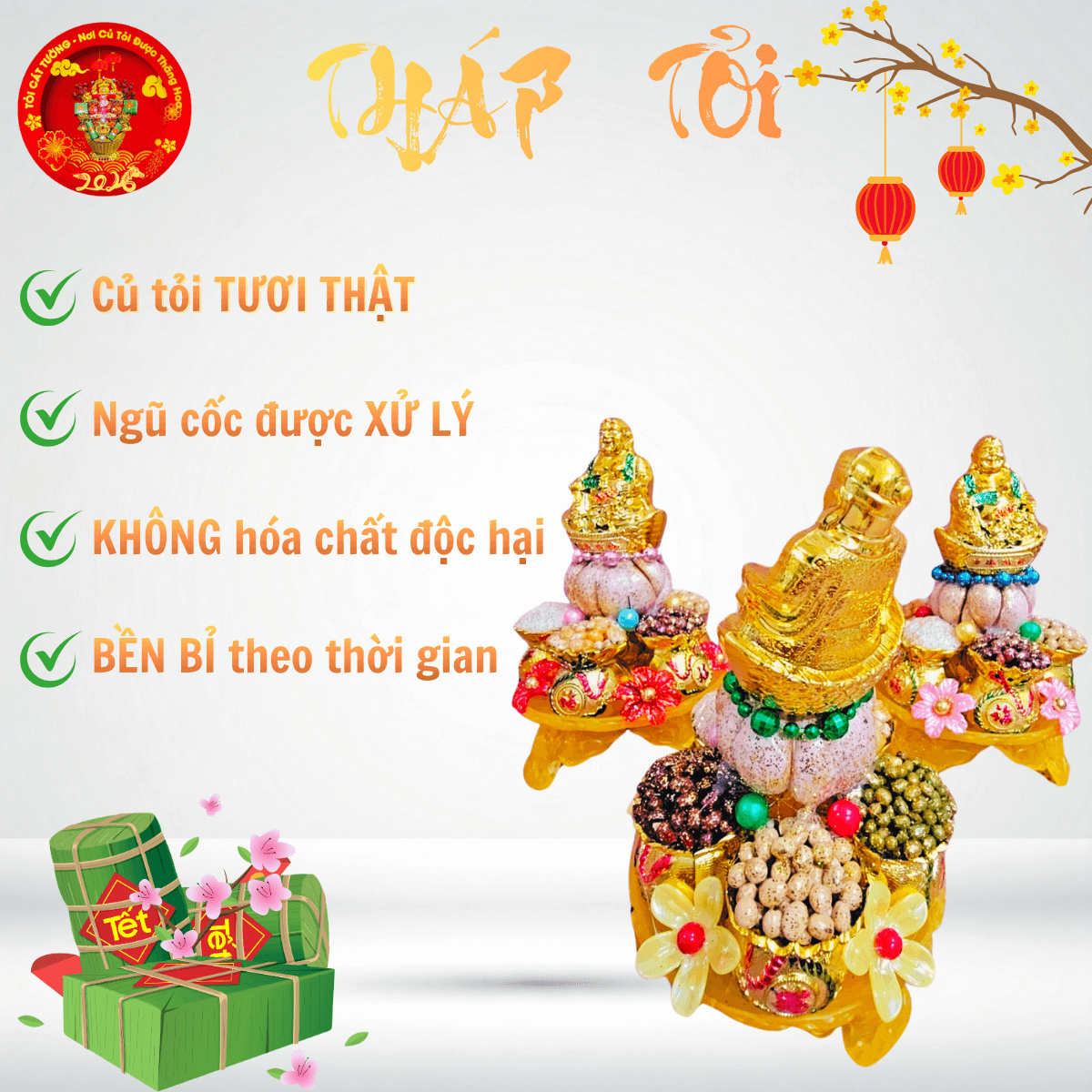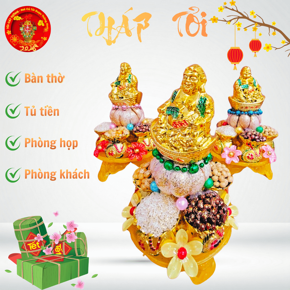 Những củ tỏi tươi được thăng hoa thành những tháp tỏi ĐẸP ĐỘC LẠ giúp bạn trang hoàng cho bàn thờ ông địa thần tài nhà mình thêm phần thành kính.