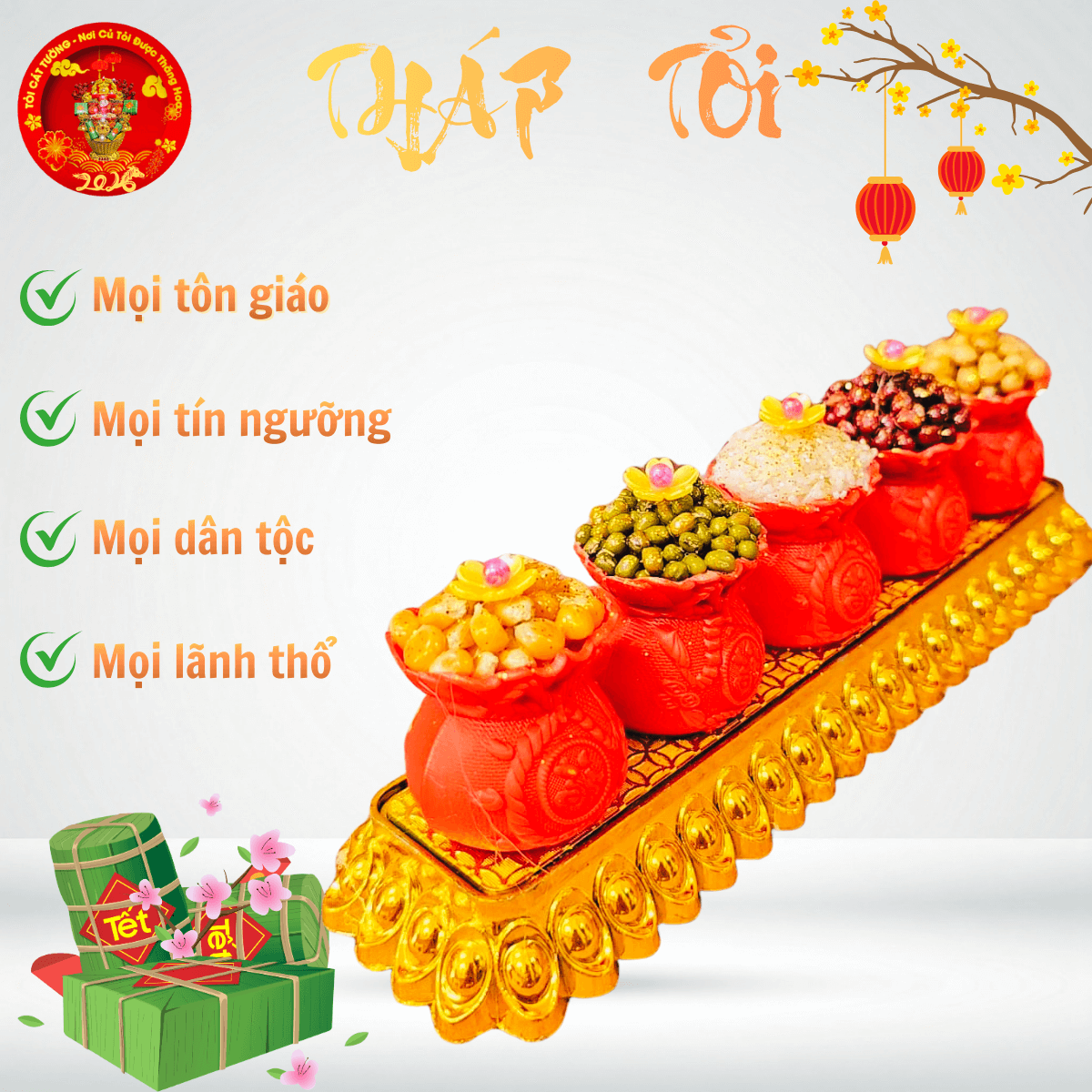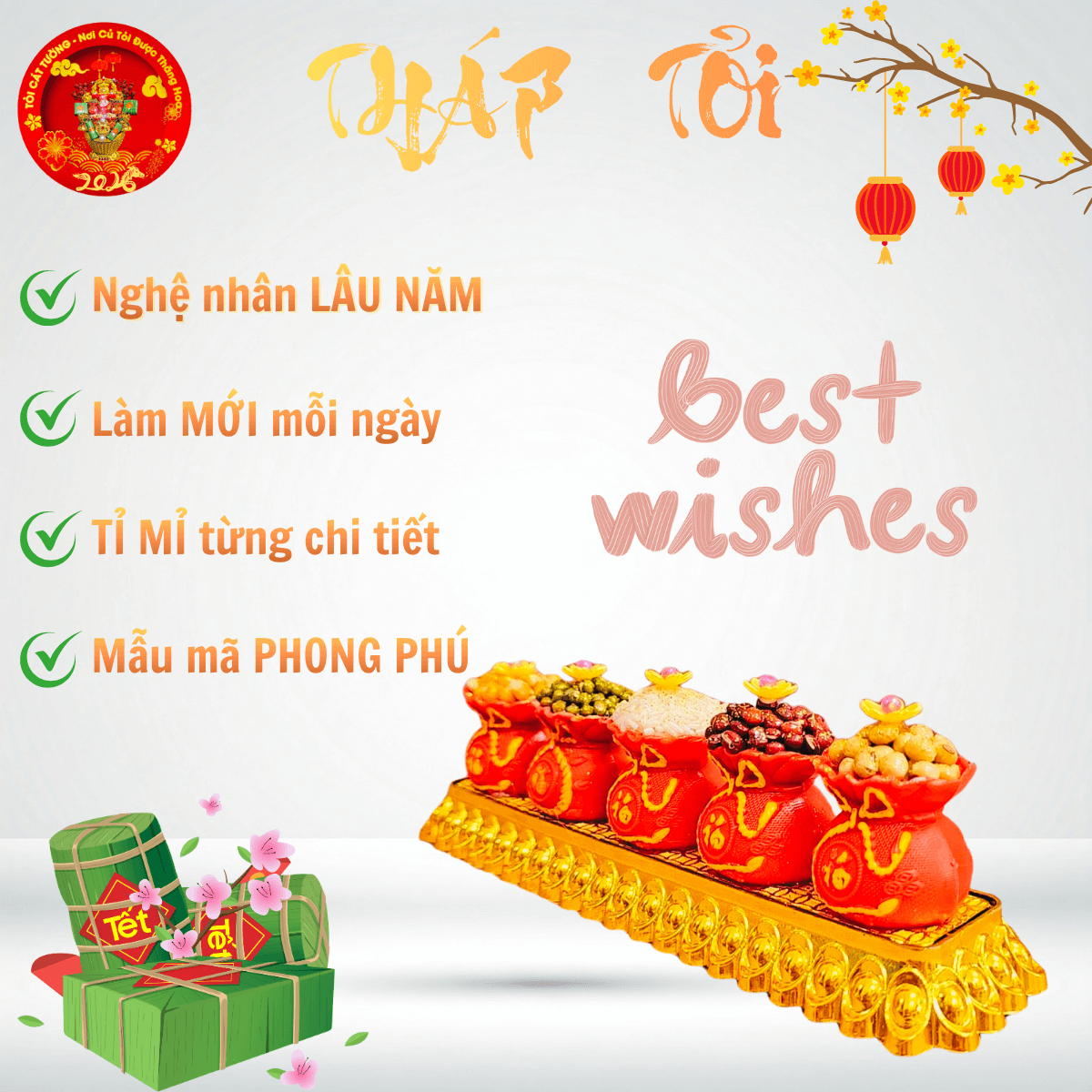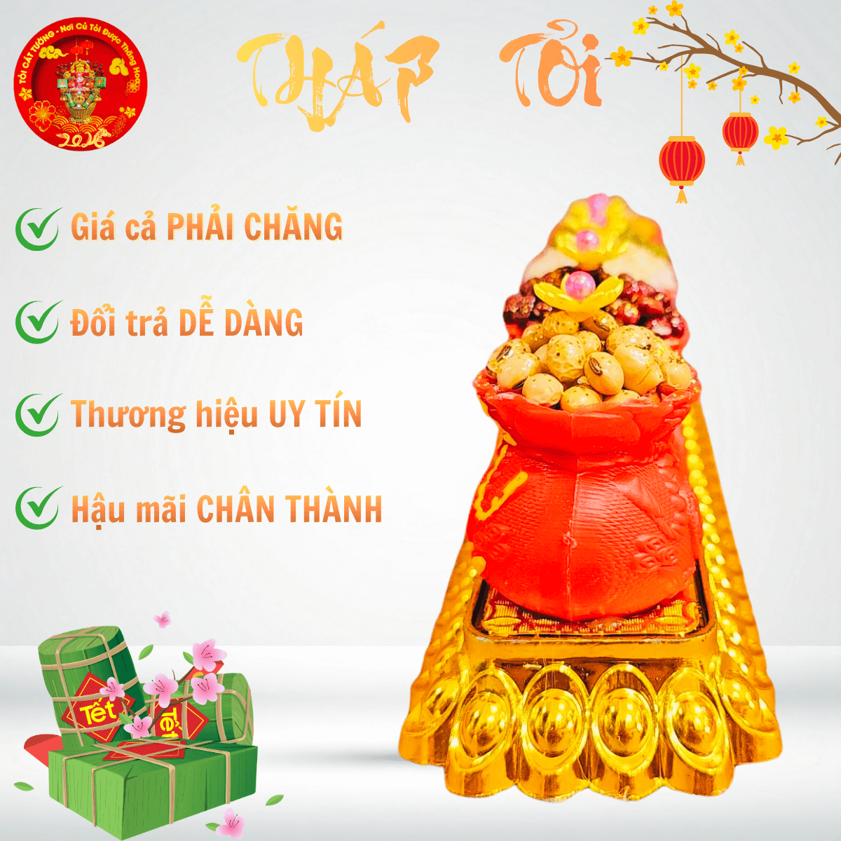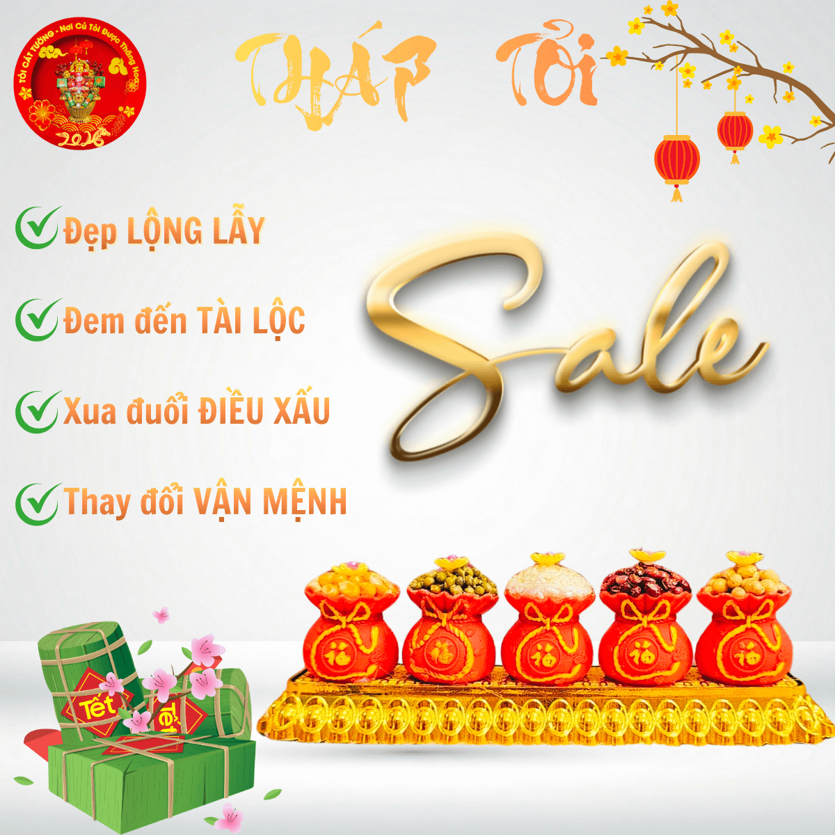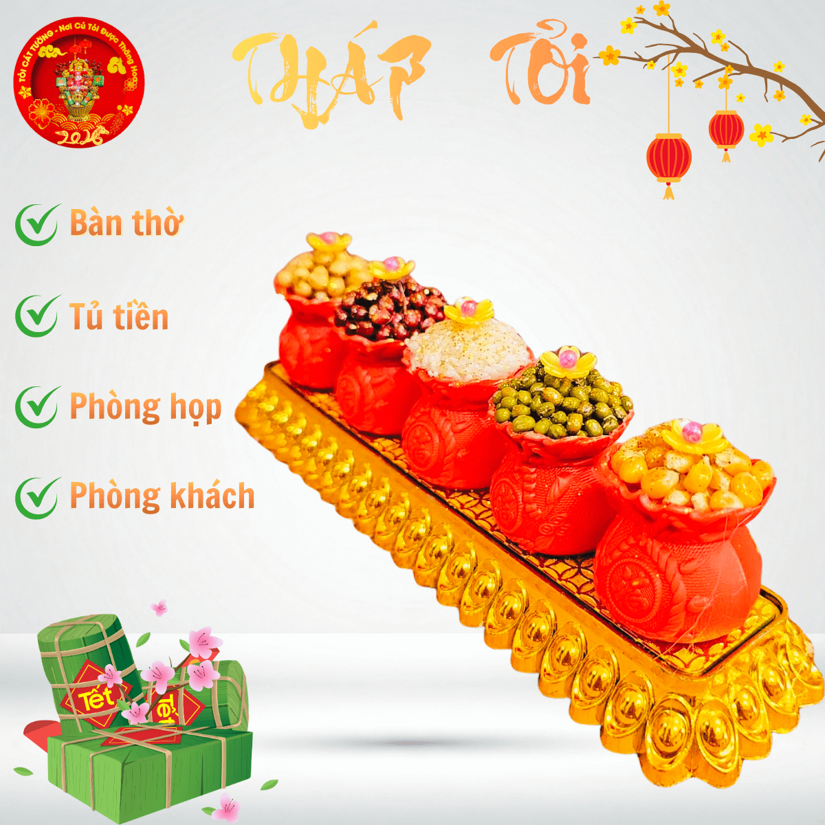 - Bông tỏi ông địa vỉ 5 túi đỏ ngũ cốc hoa mai giải phóng vượng khí đem đến tài lộc và may mắn cho gia chủ khi xuân về