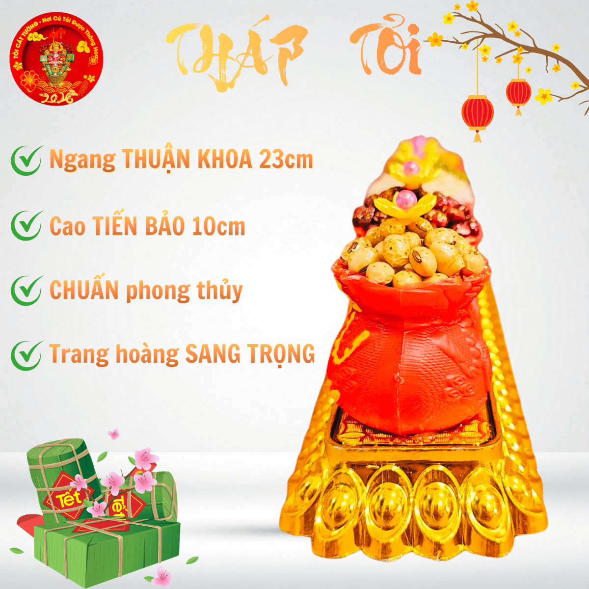 - Kích thước chiều ngang THUẬN KHOA 23cm x chiều cao TIẾN BẢO 10cm