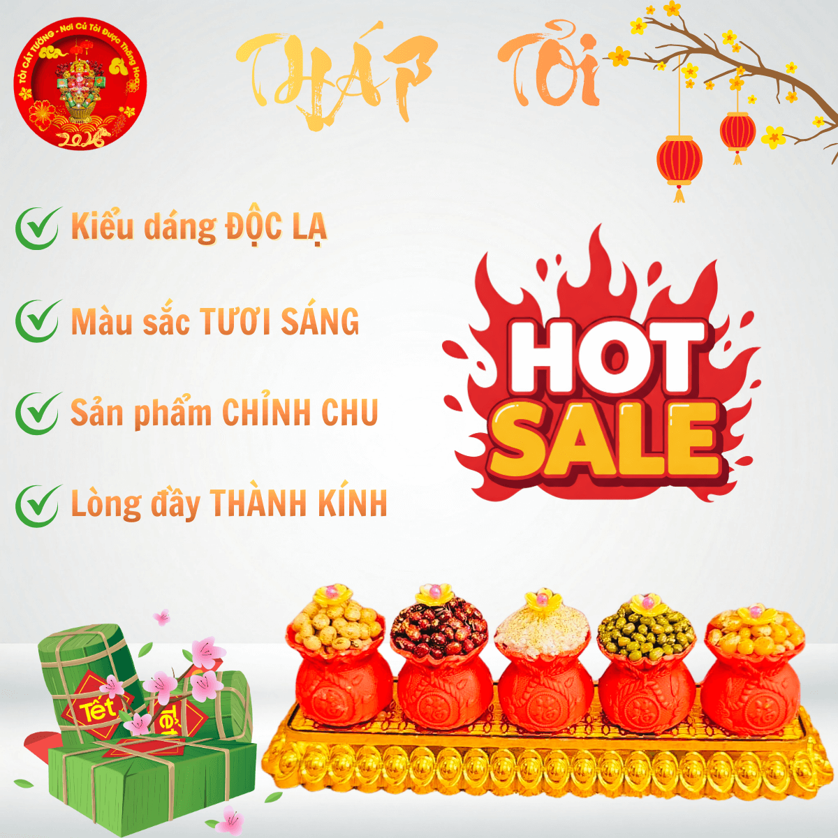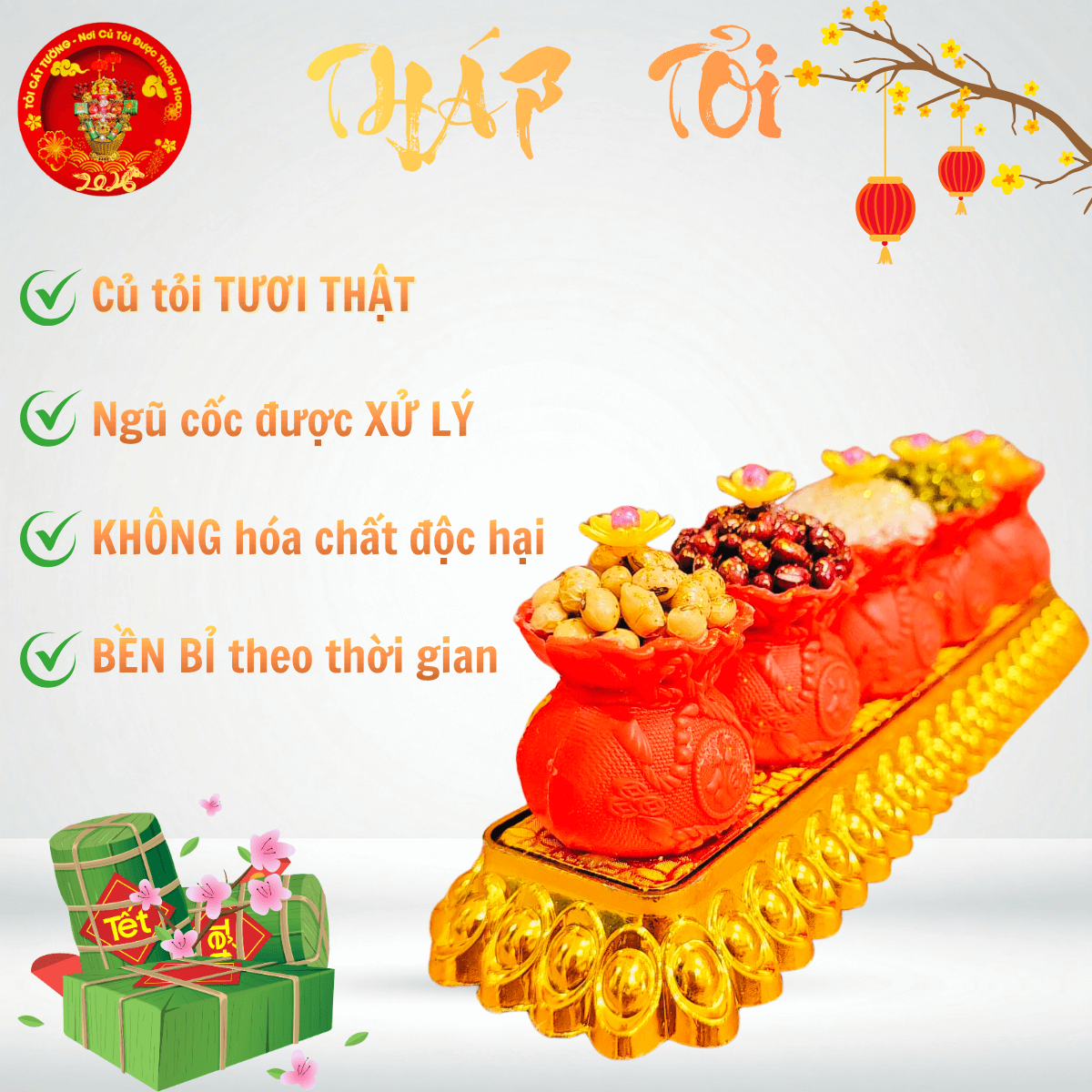 TỎI CÁT TƯỜNG hân hạnh mang đến Bông tỏi ông địa vỉ 5 túi đỏ ngũ cốc hoa mai giải phóng vượng khí đem đến tài lộc và may mắn cho gia chủ khi xuân về nhé!
