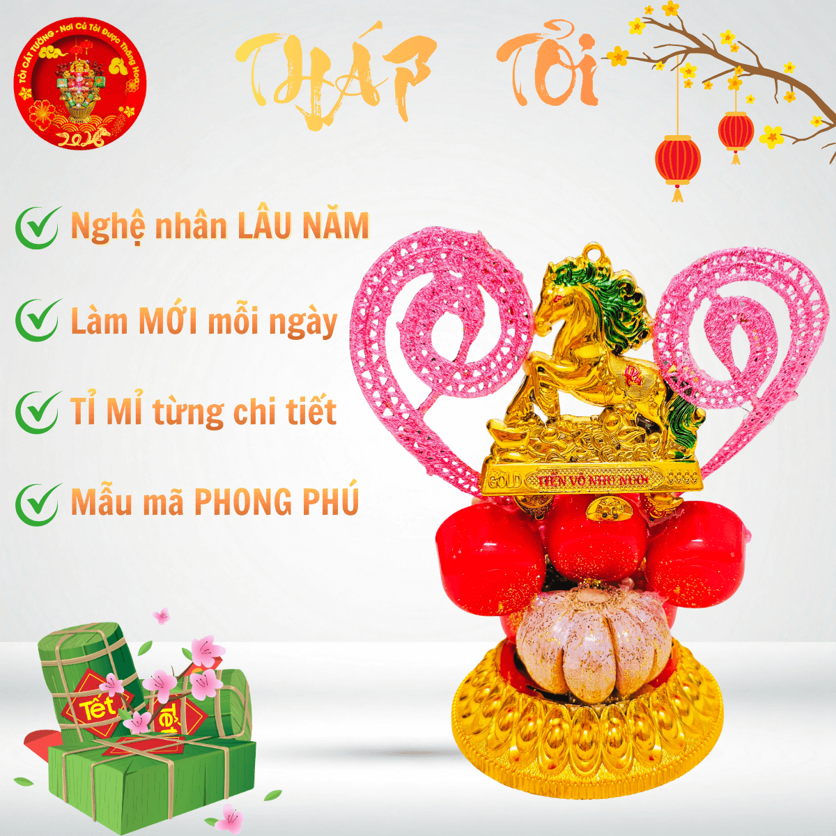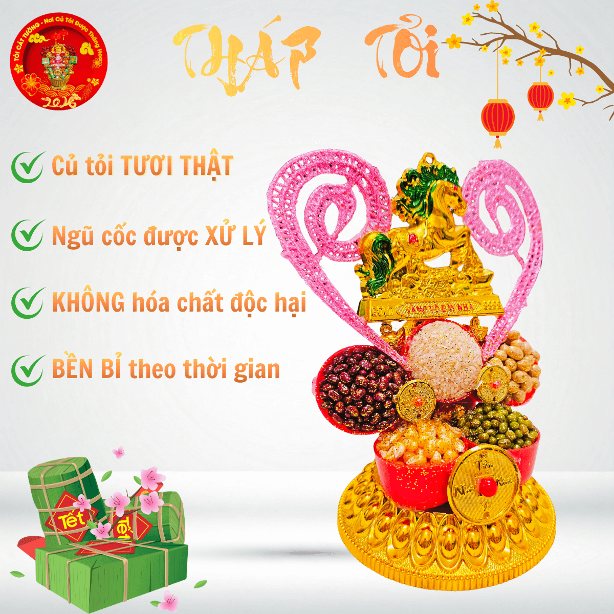 Những củ tỏi tươi được thăng hoa thành những tháp tỏi ĐẸP ĐỘC LẠ giúp bạn trang hoàng cho bàn thờ ông địa thần tài nhà mình thêm phần thành kính.