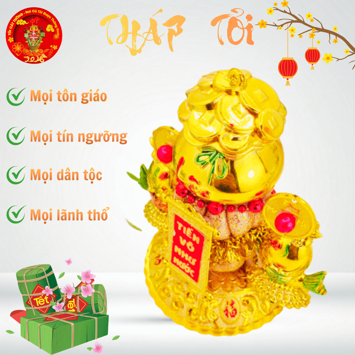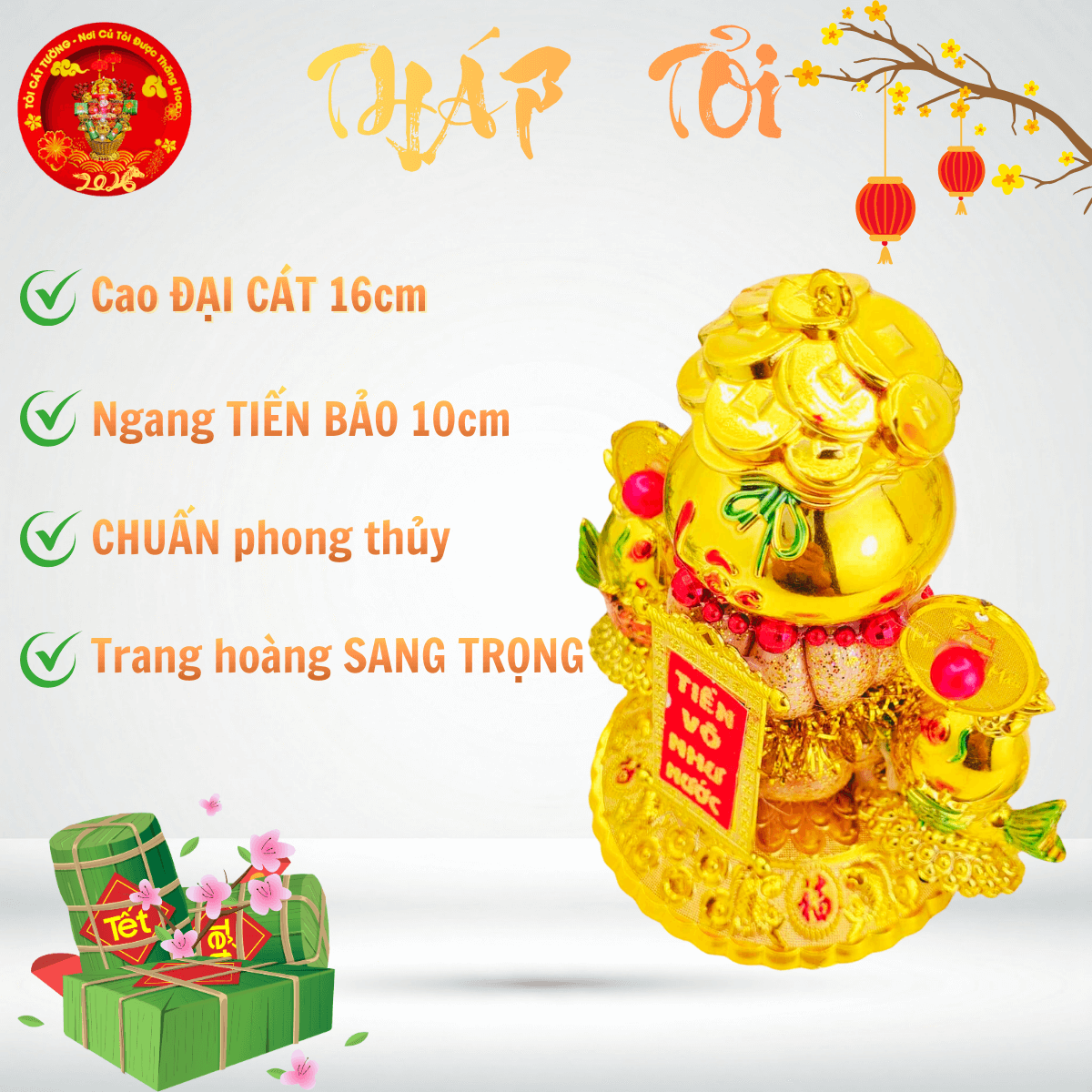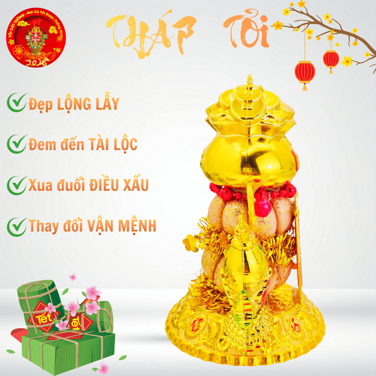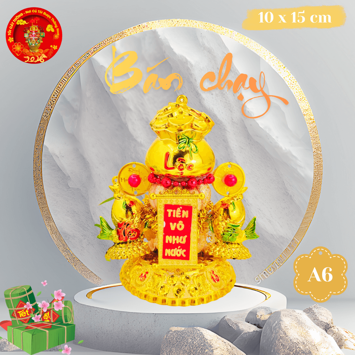 TỎI CÁT TƯỜNG hân hạnh mang đến Bông tỏi thần tài phát lộc có chiếc túi lớn chứa đầy đồng vàng, liễn đỏ nhũ " tiền vô như nước" hoặc "vàng vô đầy nhà", cặp cá song hỷ hưng thịnh rất ý nghĩa và đẹp hoàn hảo!