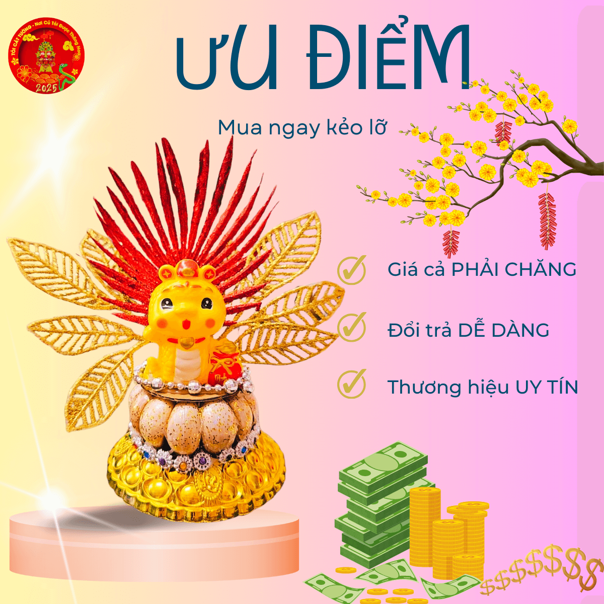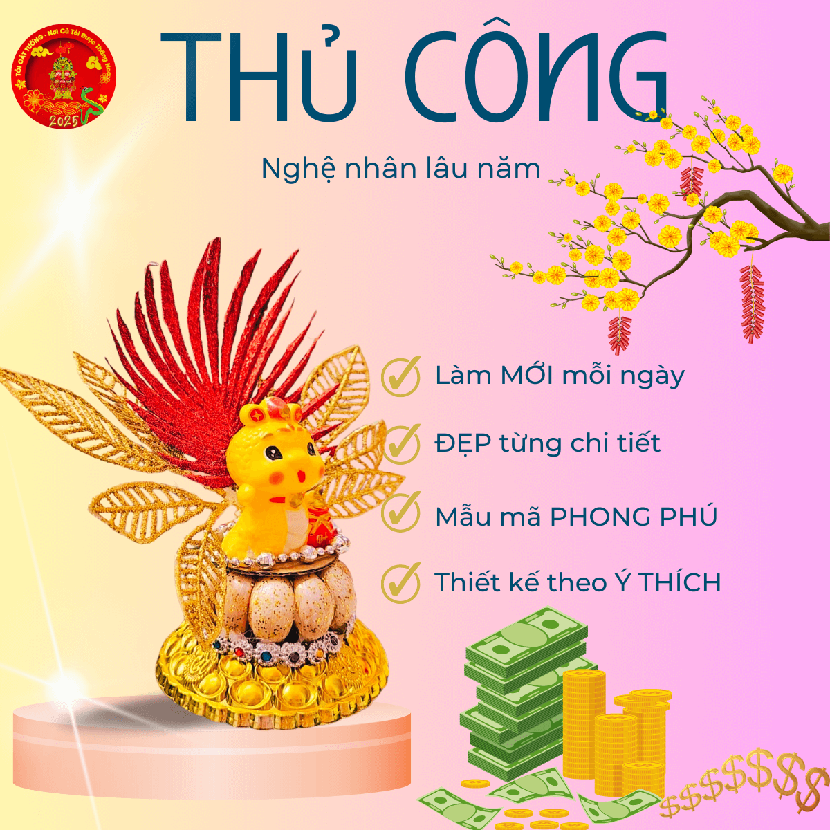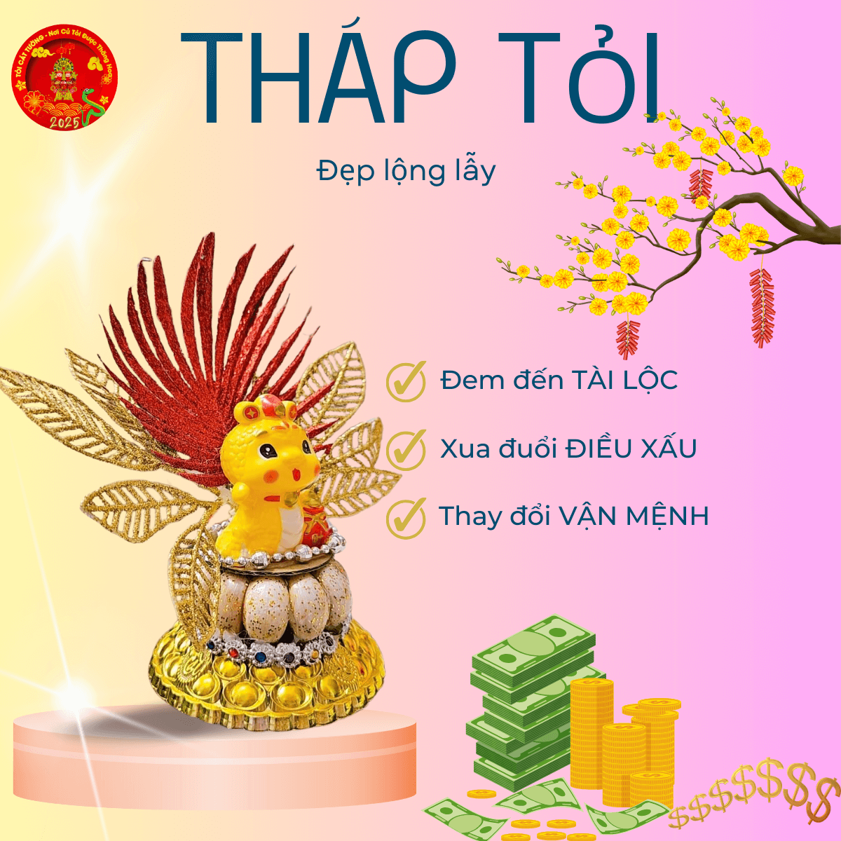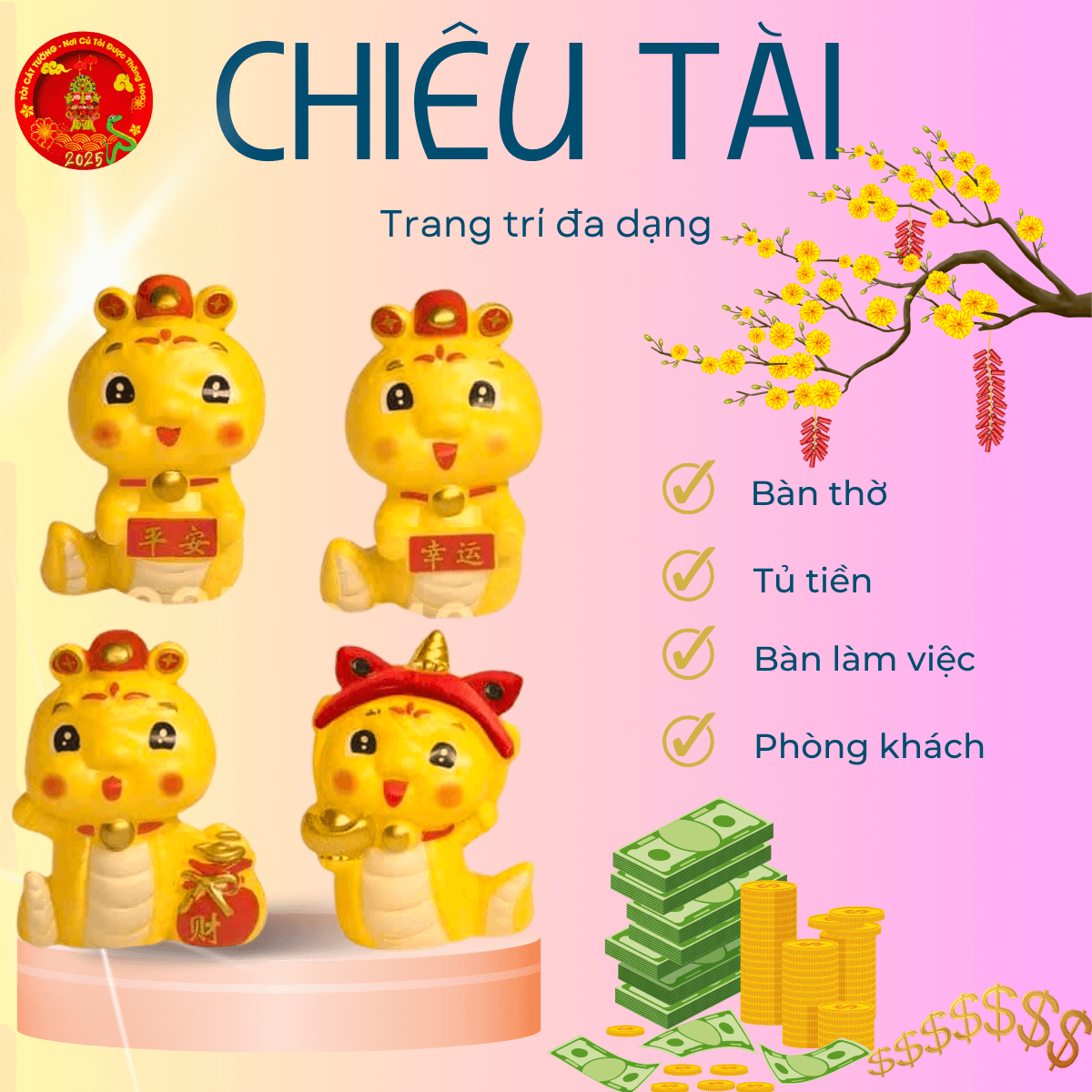 Bông tỏi thần tài rắn chiêu tài thổi làn không khí ngập sắc xuân, mang năng lượng tích cực đầy linh thiêng trang hoàng nhà cửa thêm phần lộng lẫy, may mắn và đầy an nhiên nè!