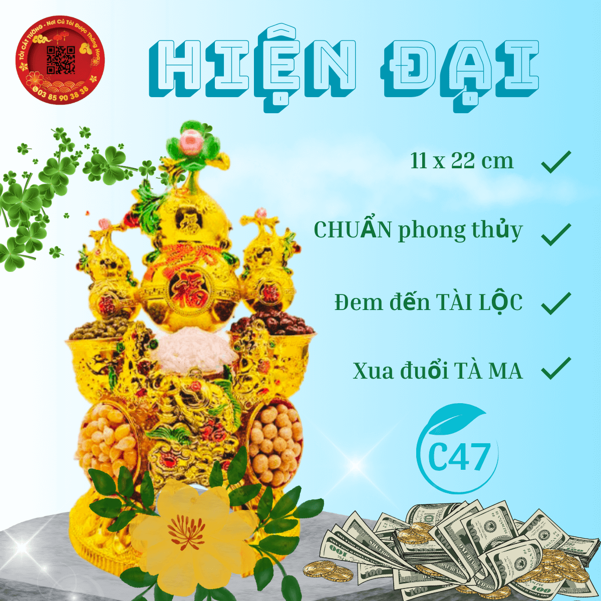 - Kích thước chiều ngang THÊM PHÚC 11 cm x chiều cao TÀI LỘC 22 cm
