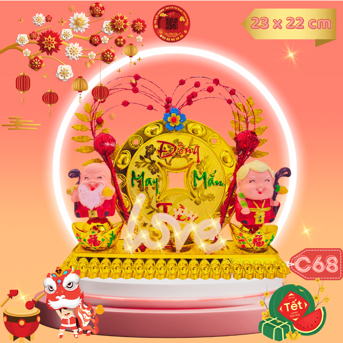 - Kích thước chiều ngang THUẬN KHOA 23 cm x chiều cao TÀI LỘC 22 cm