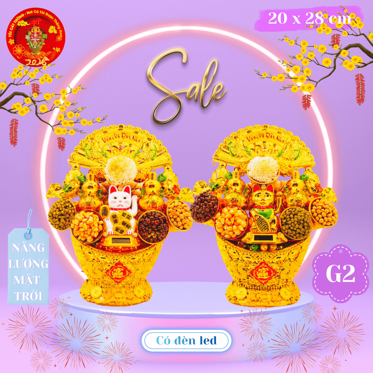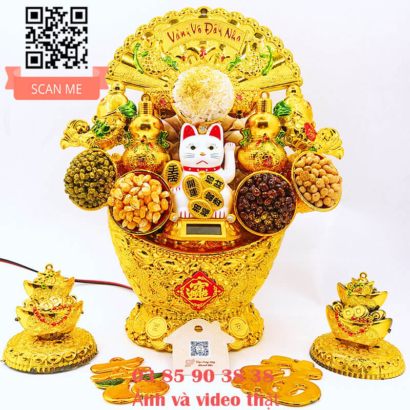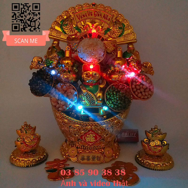 - Tháp tỏi chưng ông Địa mèo phong thủy năng lượng mặt trời có đèn led đẹp lộng lẫy trong từng chi tiết chiêu tài gọi lộc may mắn