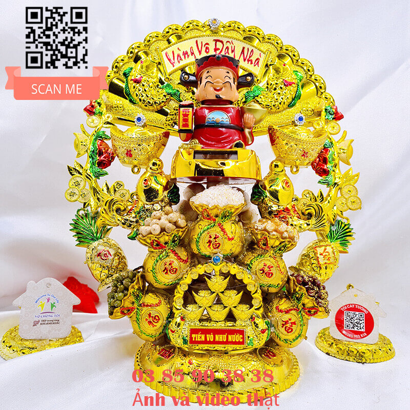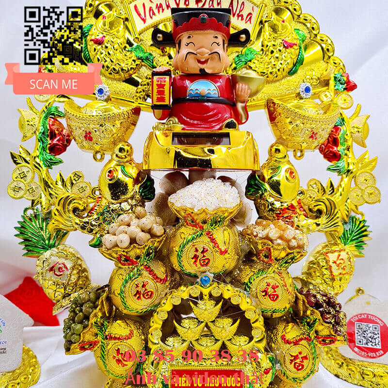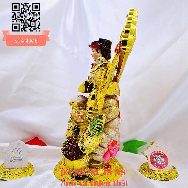 - Miệng ông thần tài cười toe toét phúc hậu gật đầu liên tục, hai tay cầm vàng và liễng tài lộc nâng lên xuống sẽ giúp gia chủ phát tài, phát lộc và hoan hỉ