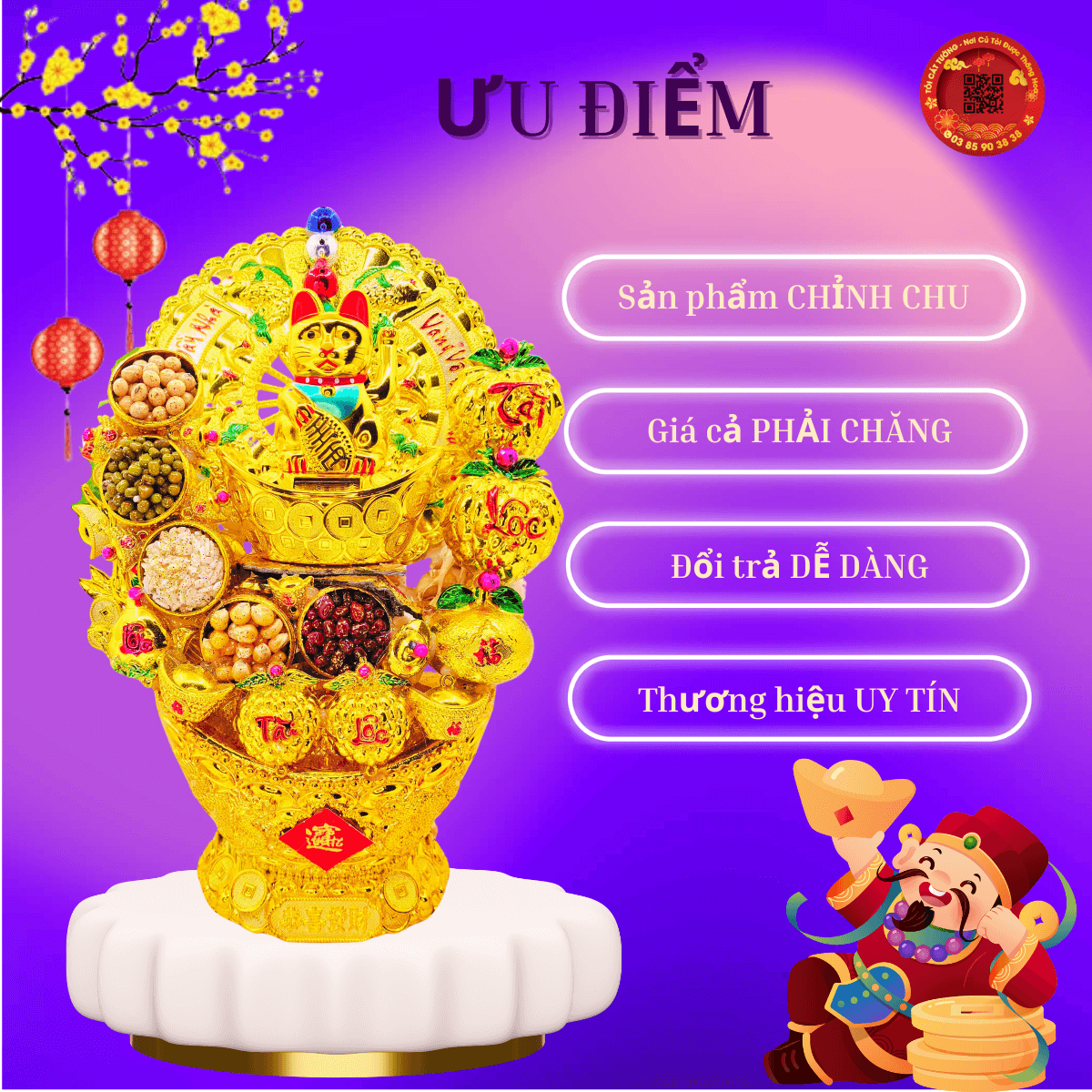 - Kích thước Chiều Ngang TÀI VƯỢNG 17 cm x Chiều Cao HƯNG VƯỢNG 31 cm
