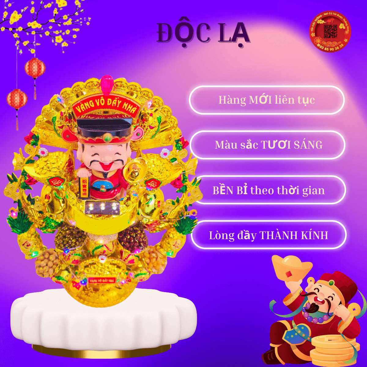 - Ông thần tài sử dụng năng lượng mặt trời hoặc ánh sáng bóng đèn điện nhỏ, thân thiện môi trường