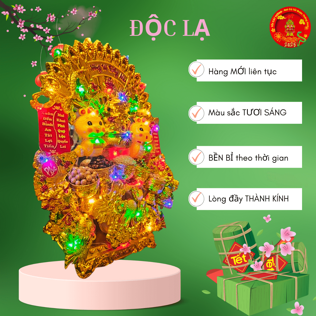 Những tép tỏi được chọn lựa kỹ lưỡng và sắp xếp theo chuẩn phong thủy giúp mang lại tài lộc cho gia chủ. Bạn không cần lo lắng phải chịu đựng mùi tỏi nồng nặc của chúng đâu vì chúng tôi đã xử lý hoàn hảo mùi hương khó chịu đó rồi nhé!