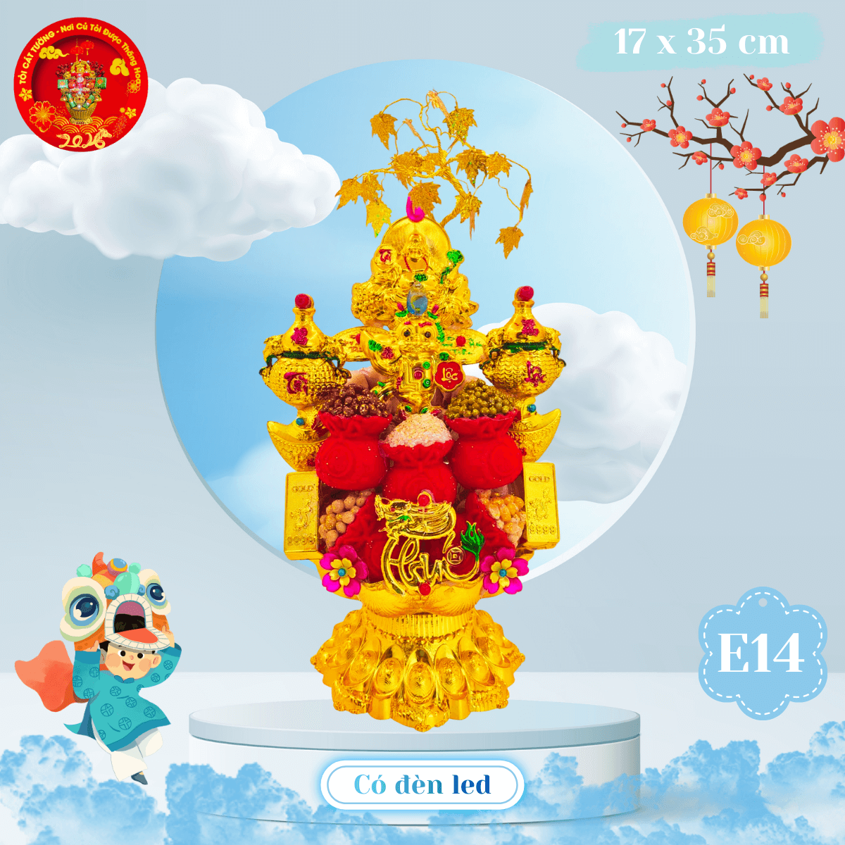 - Kích thước chiều ngang TÀI VƯỢNG 17 cm x chiều cao NGHINH PHÚC 35cm
